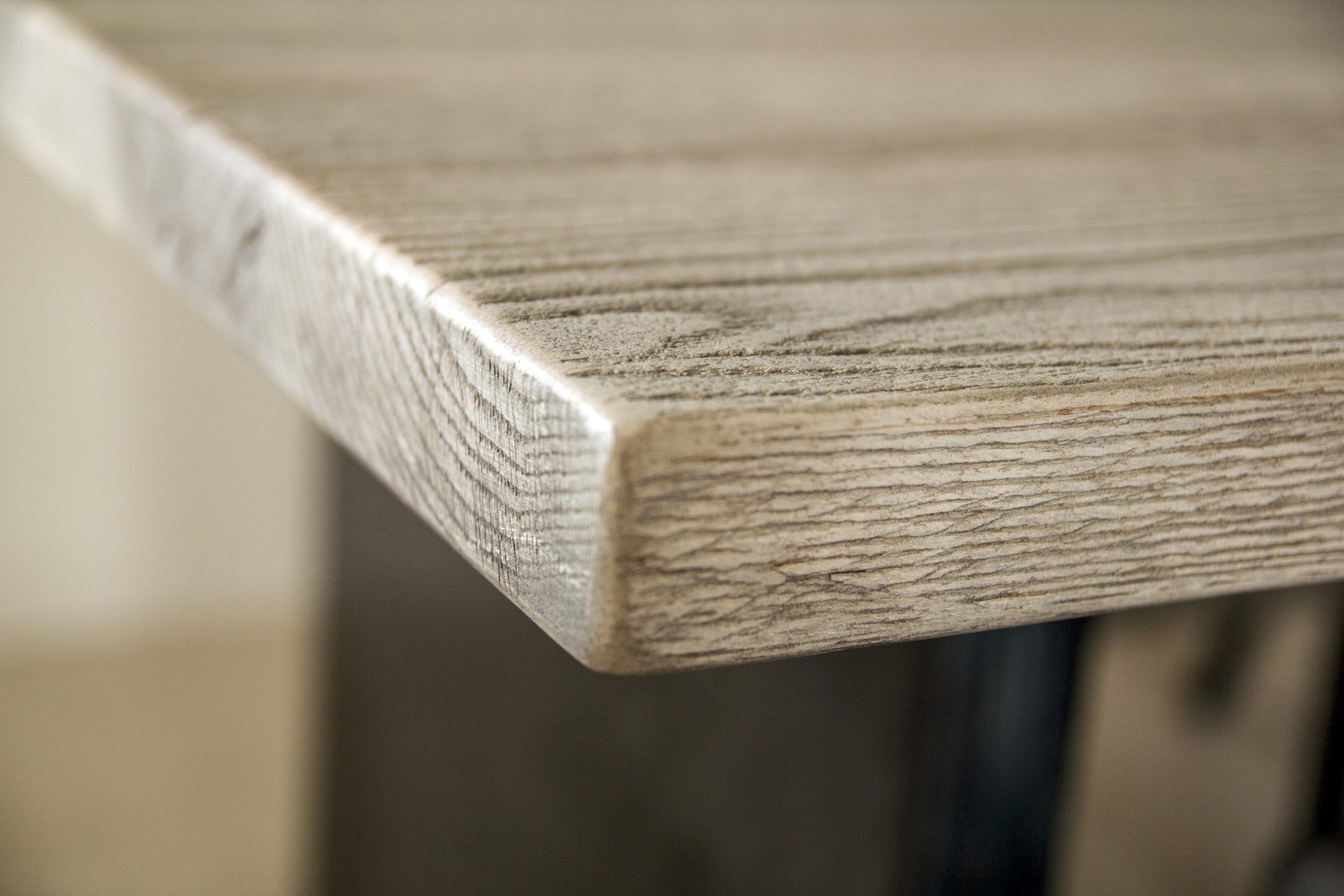 Asztallap anyaga: rusztikus jellegű tömör tölgyfa (természetes repedésekkel, görcsökkel)