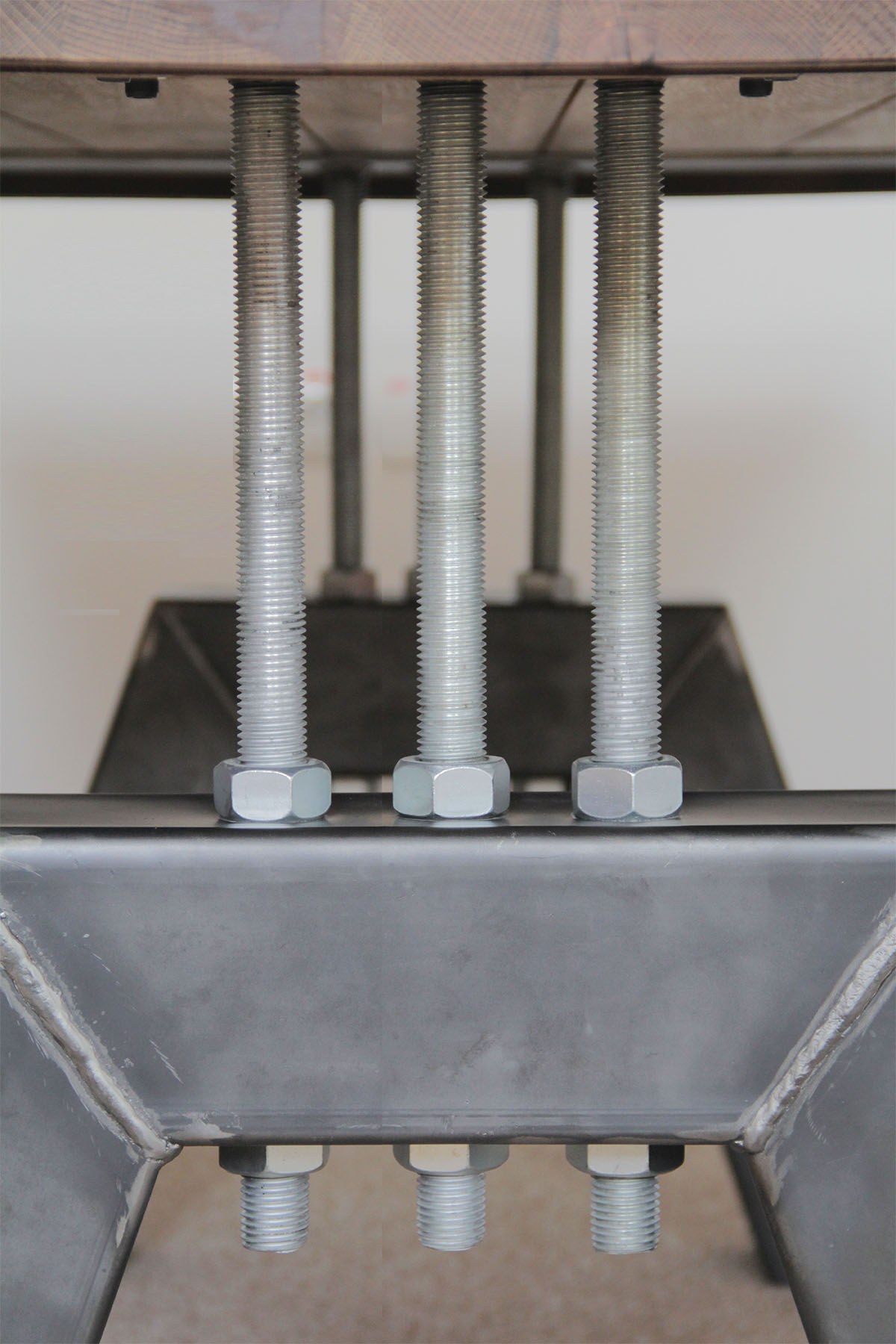 Asztallap anyaga: rusztikus jellegű tömör tölgyfa (természetes repedésekkel, görcsökkel)