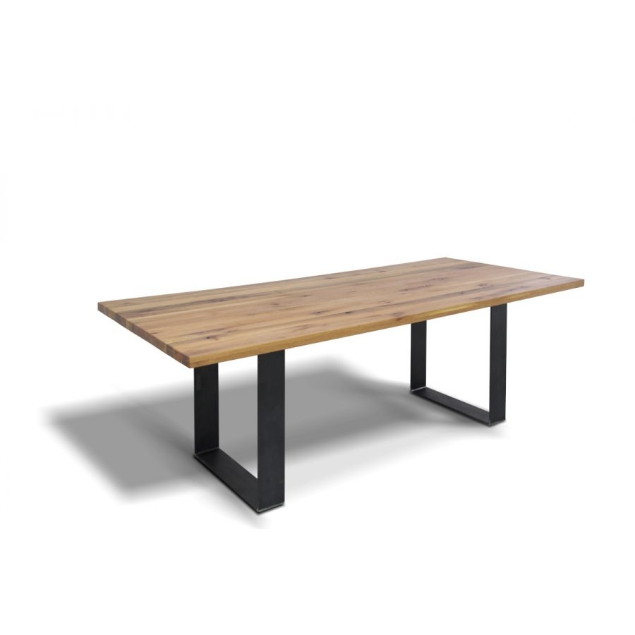 Geneva tömör tölgyfa étkezőasztal nemesacél lábazattal.