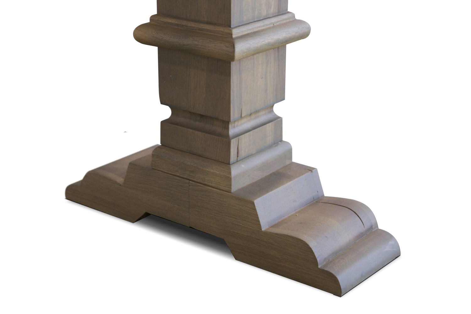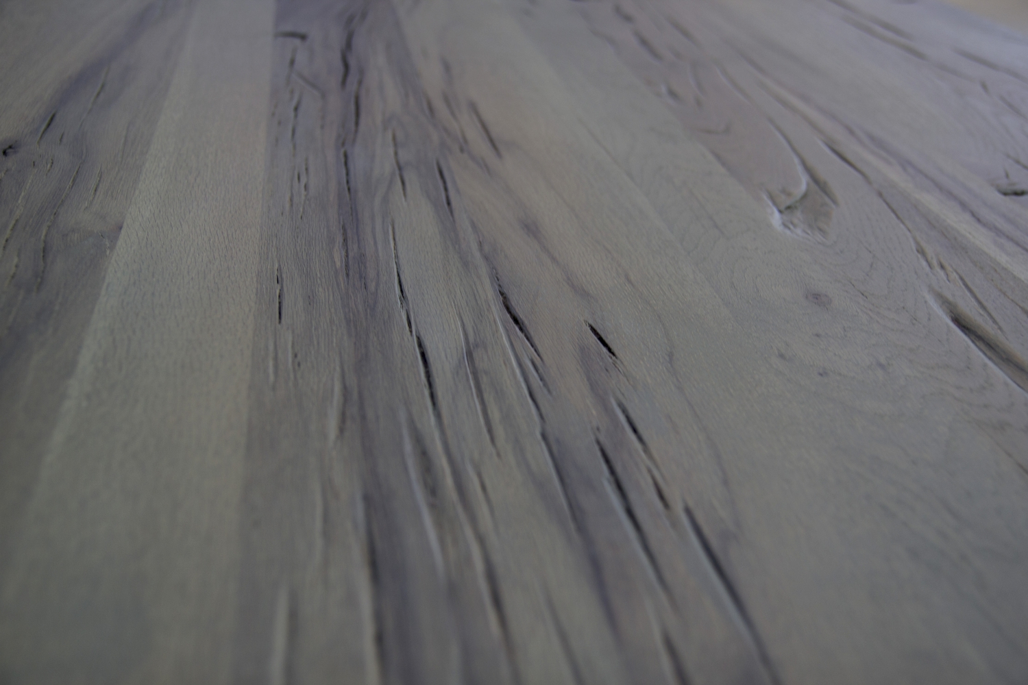 Asztallap anyaga: rusztikus jellegű tömör tölgyfa (természetes repedésekkel, görcsökkel)