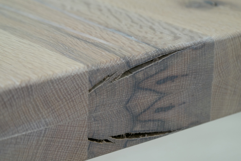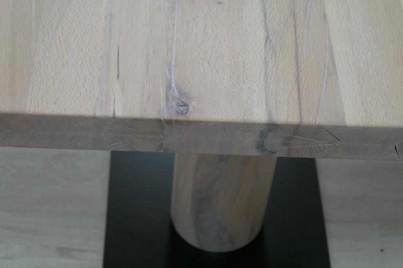 Asztallap anyaga: rusztikus jellegű tömör tölgyfa (természetes repedésekkel, görcsökkel)