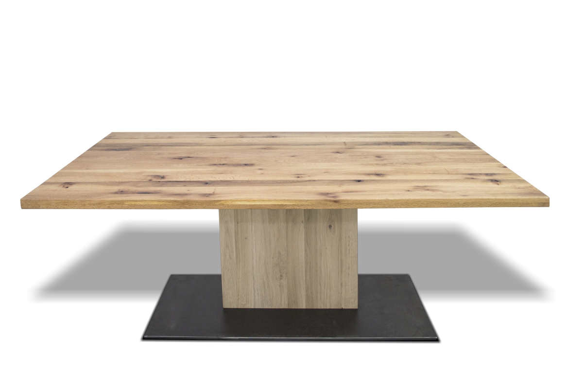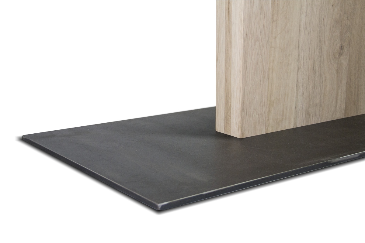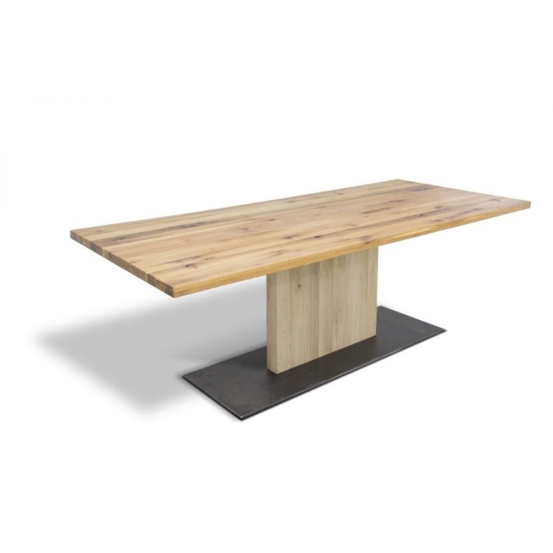 Leeds tömör tölgyfa étkezőasztal nemesacél lábazattal.