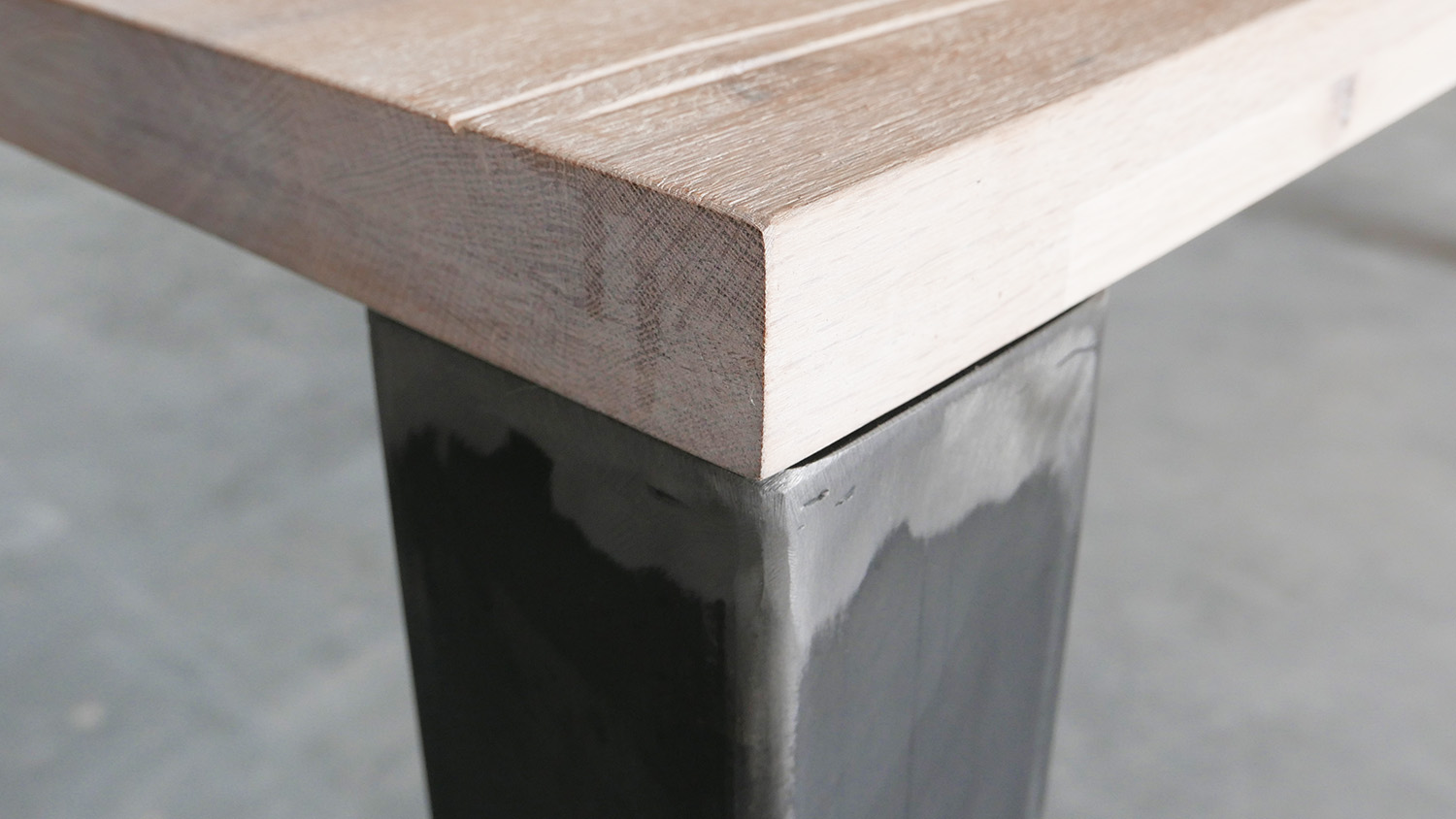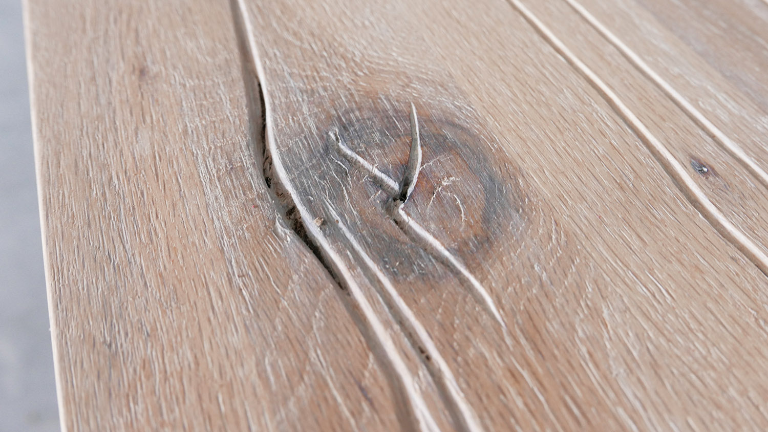 Asztallap anyaga: rusztikus jellegű tömör tölgyfa (természetes repedésekkel, görcsökkel)