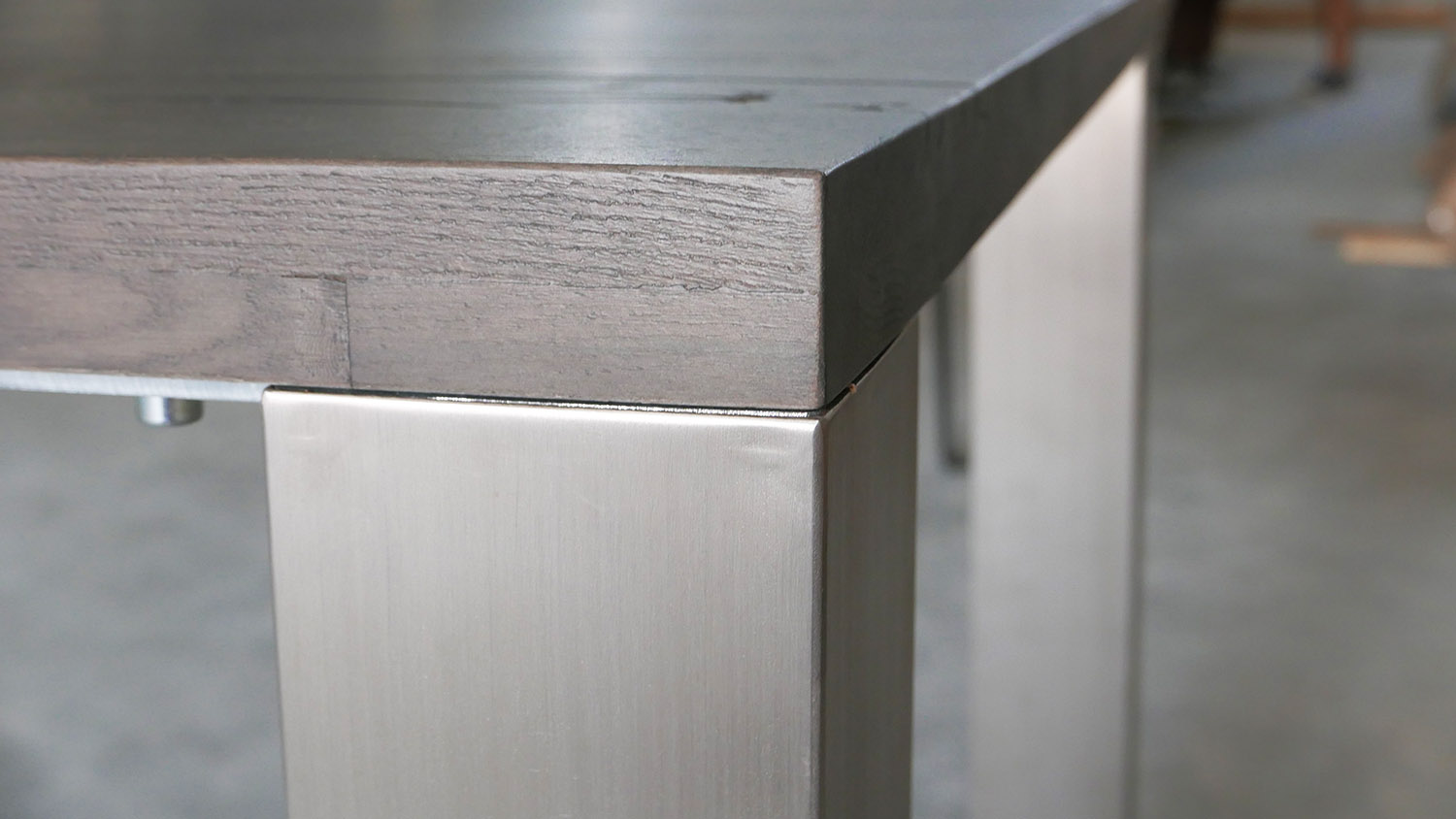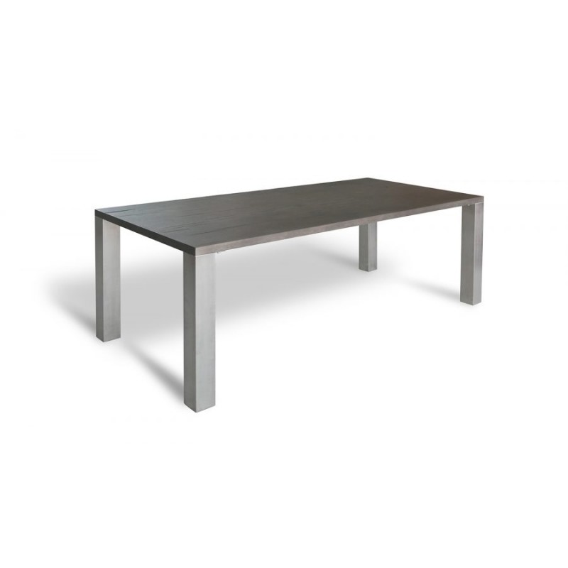 Leo inox tömör tölgyfa étkezőasztal nemesacél lábazattal.