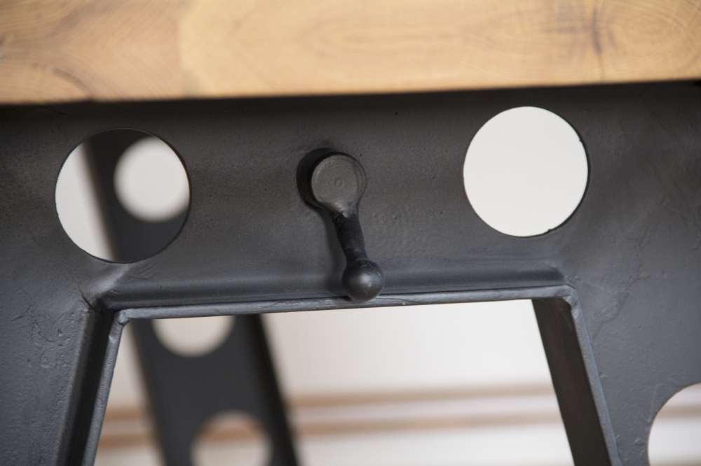 Asztallap anyaga: rusztikus jellegű tömör tölgyfa (természetes repedésekkel, görcsökkel)
