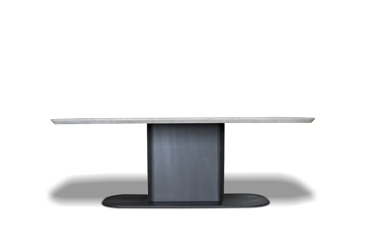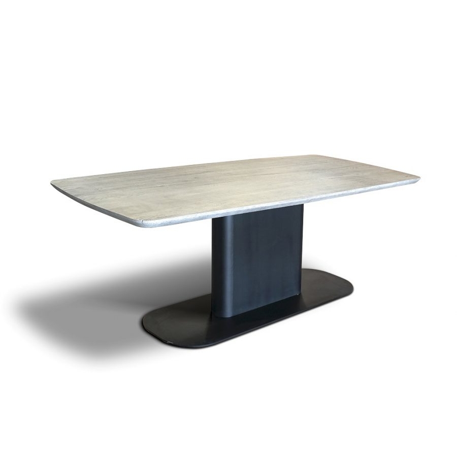 Matthias tömör tölgyfa étkezőasztal nemesacél lábazattal.