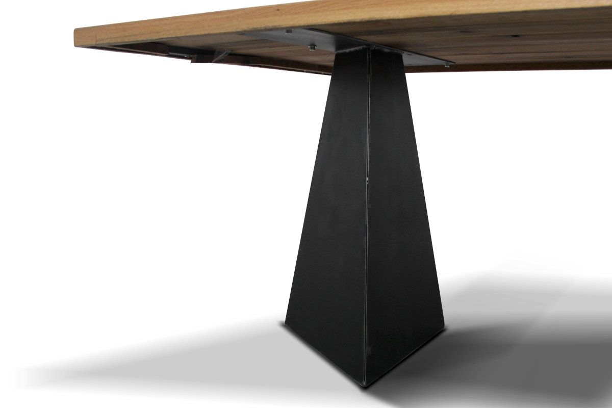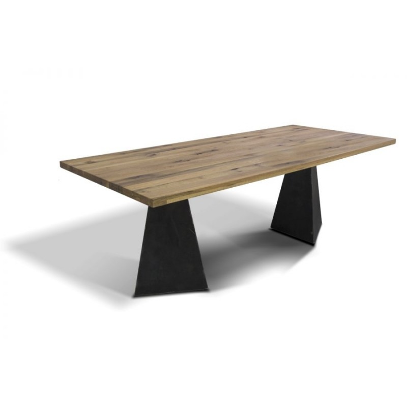 Pyramide tömör tölgyfa étkezőasztal nemesacél lábazattal.