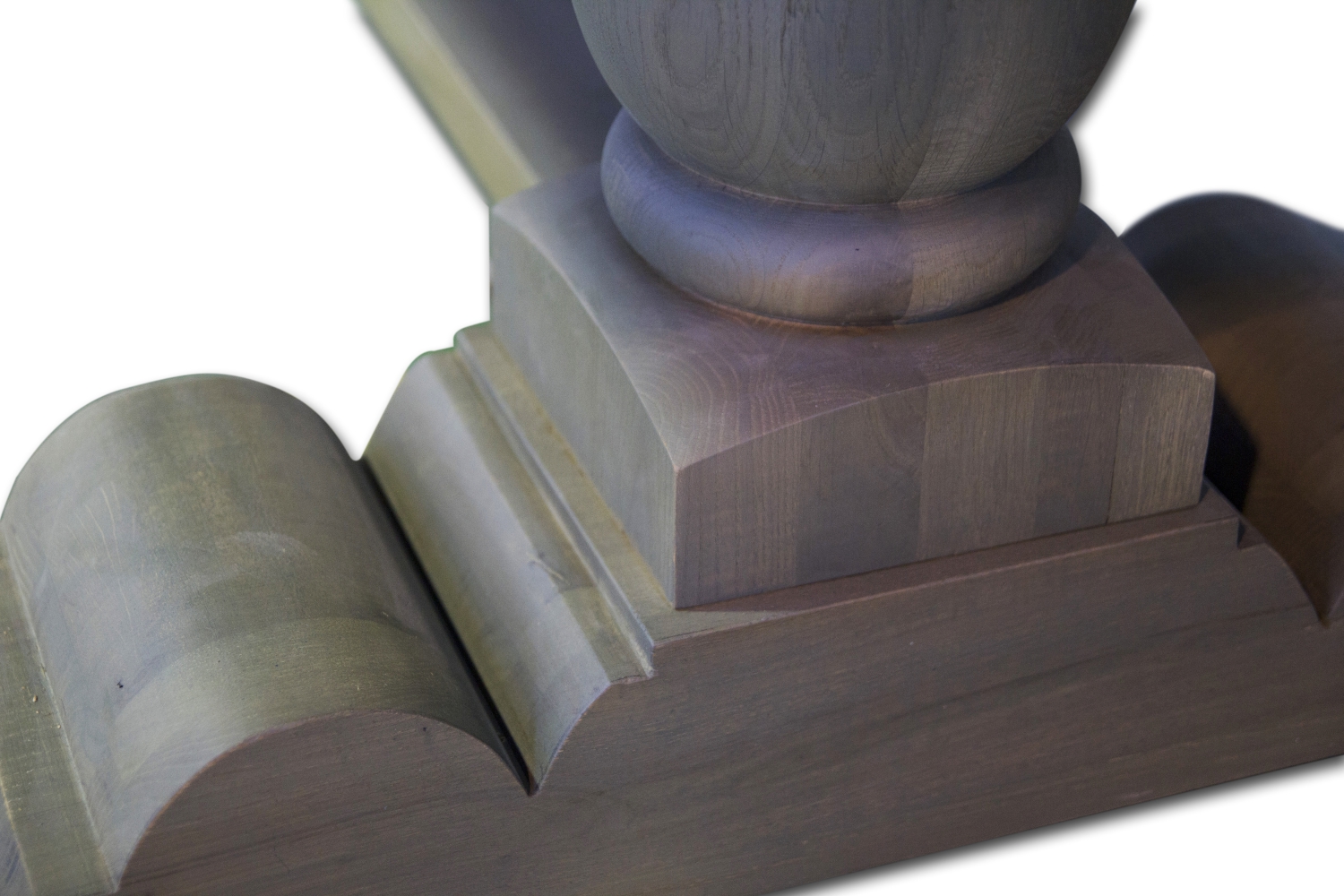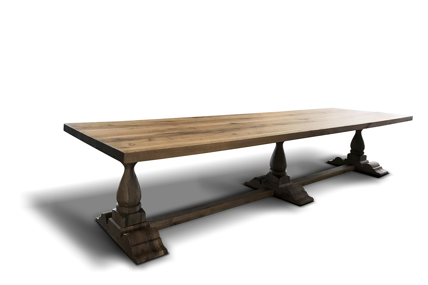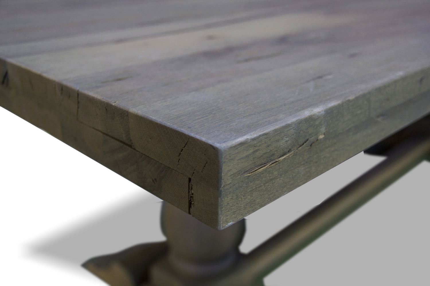 Asztallap anyaga: rusztikus jellegű tömör tölgyfa (természetes repedésekkel, görcsökkel)