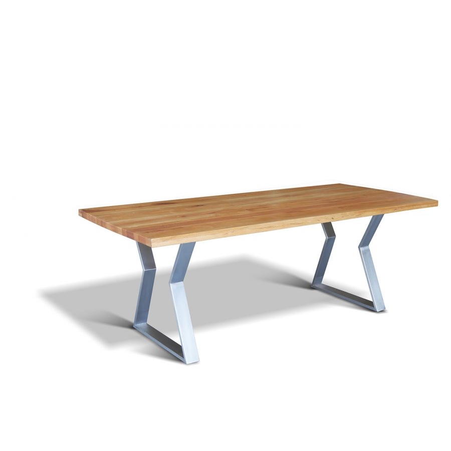 Sigma tömör tölgyfa étkezőasztal nemesacél lábazattal.