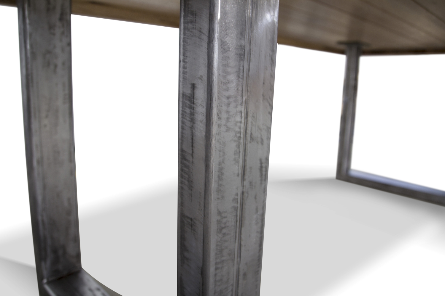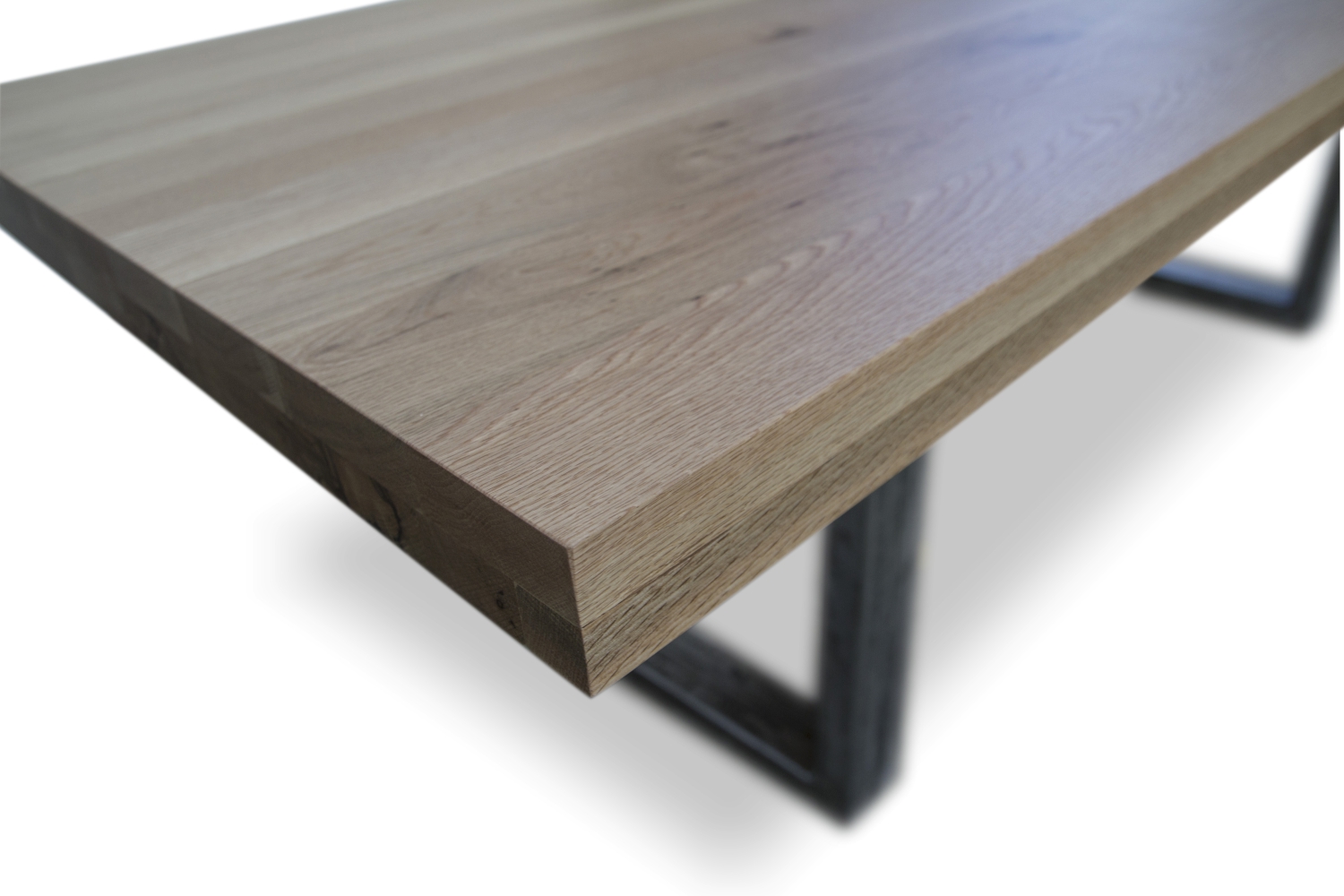 Udine tömör tölgyfa étkezőasztal nemesacél lábazattal.