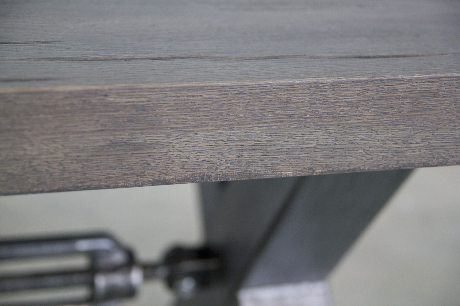 Asztallap anyaga: rusztikus jellegű tömör tölgyfa (természetes repedésekkel, görcsökkel)