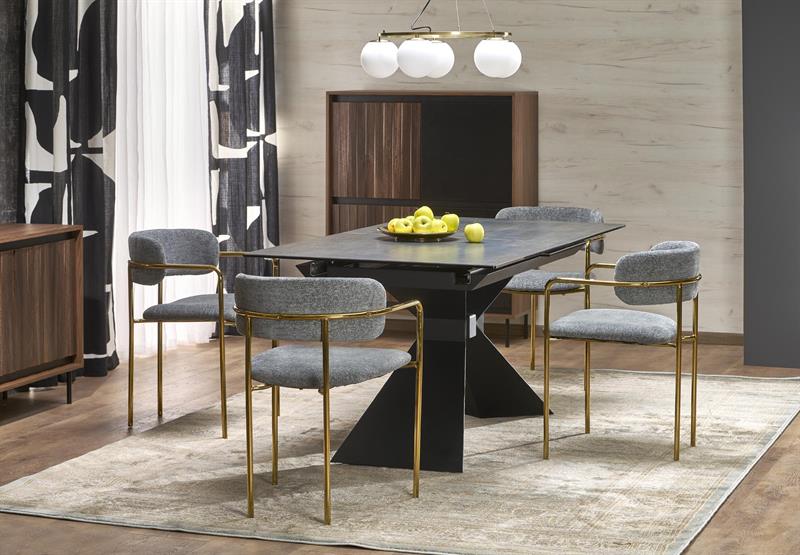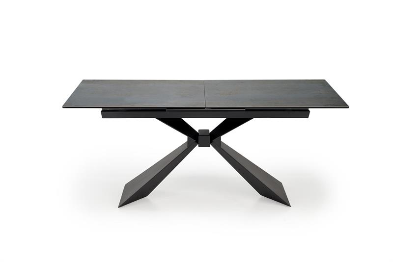 méretek: 180-230/90/76/117 cm; kihúzható asztal, anyag: kerámia / üveg / porszórt acél, szín: asztallap – kék márvány, lábak – fekete