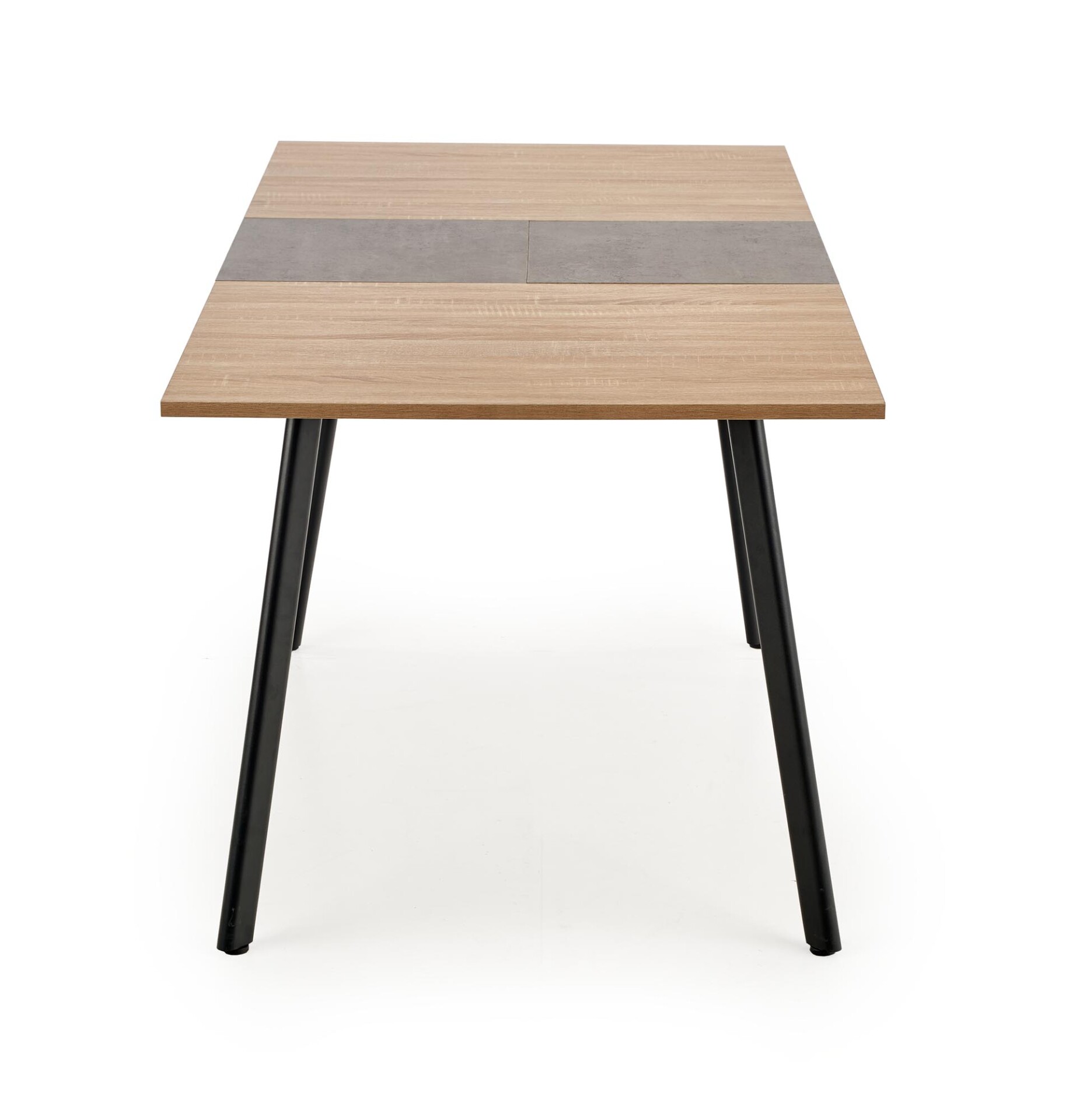 Bővíthető étkezőasztal natúr tölgy színű lappal, porszórt acél lábazattal.