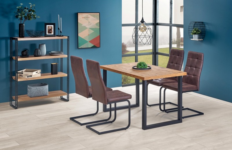 Az asztallap színe világos tölgy, a lábazat fekete porszórt acélból készül.