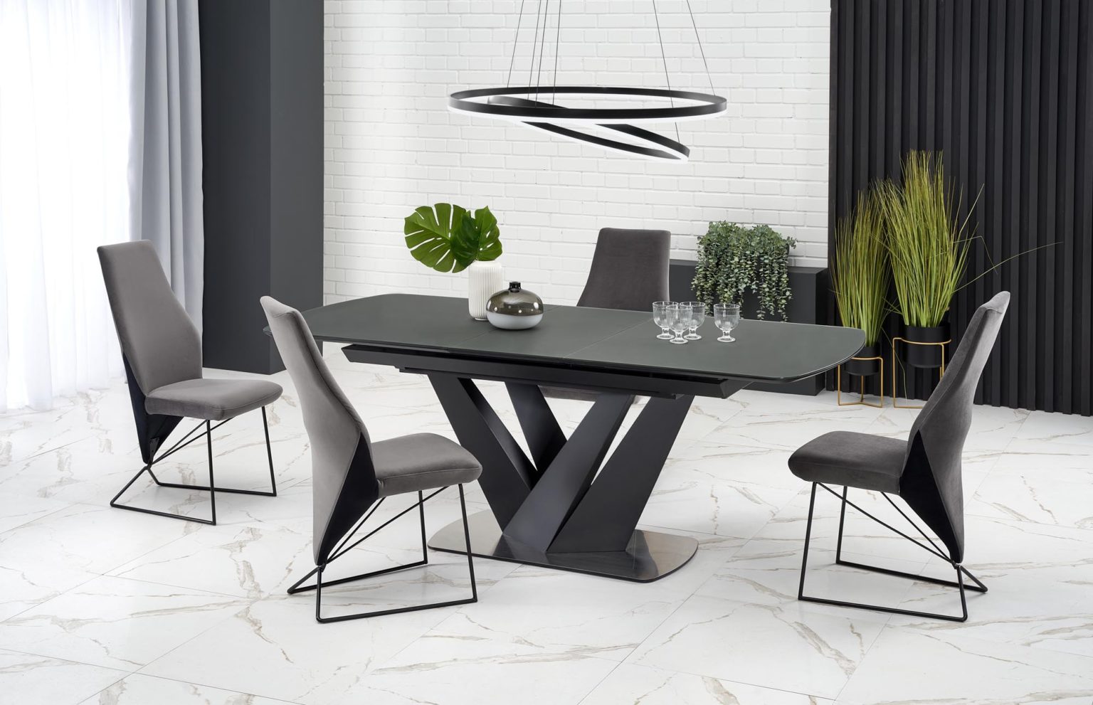 Letisztult megjelenésű bővíthető étkezőasztal.