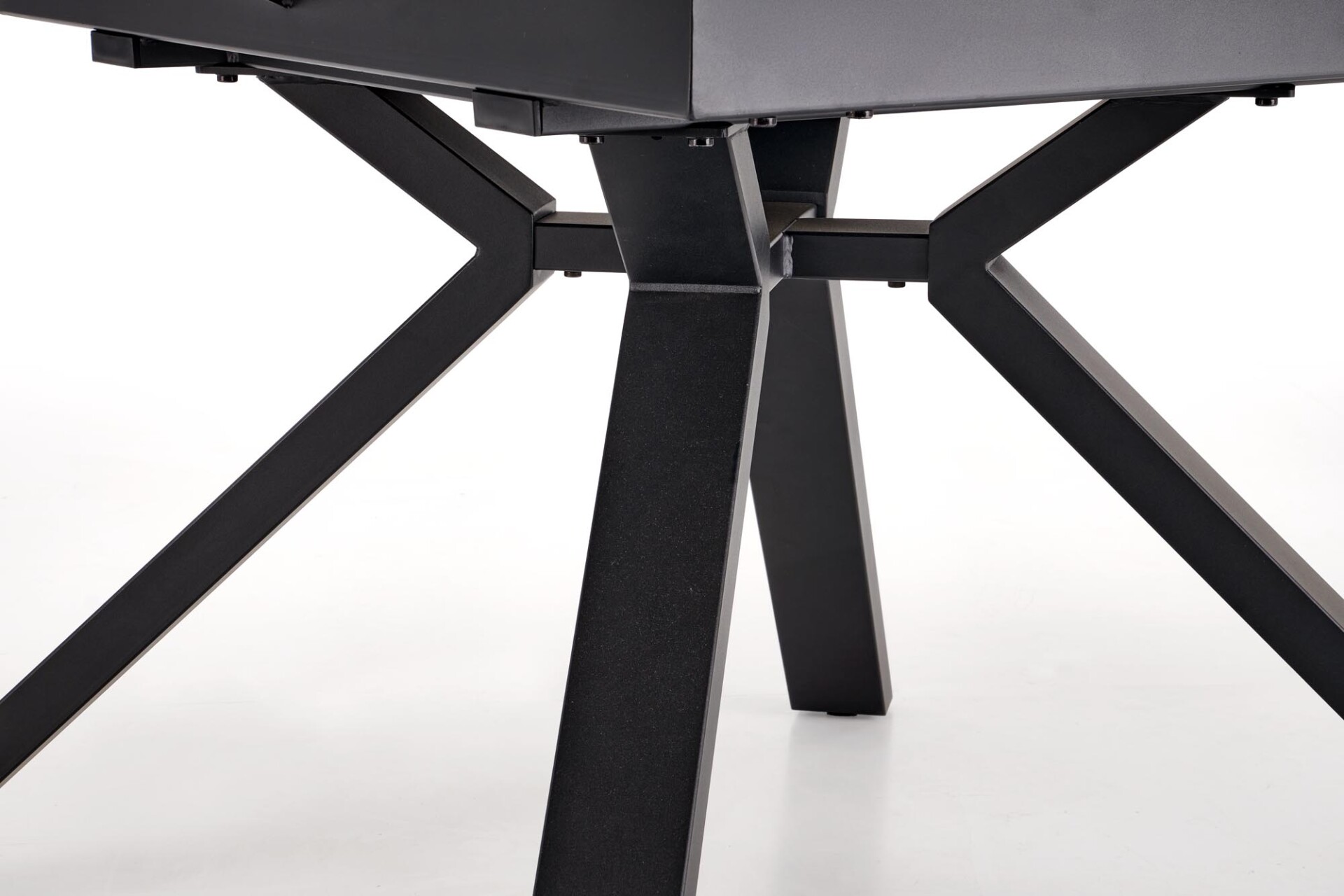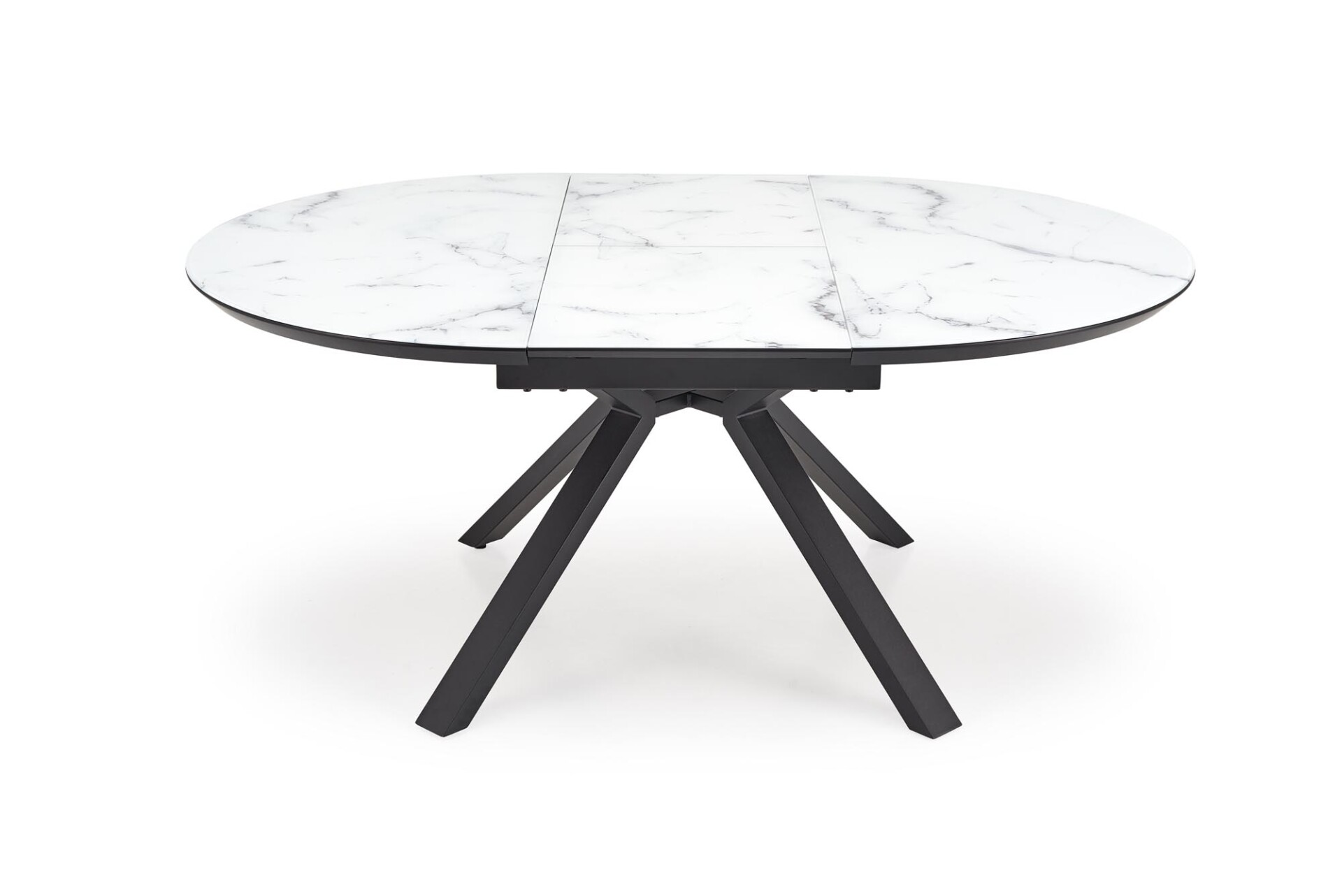 Kihúzható asztal, méretek: 130-180/130/76 cm, anyag: üveg / lakkozott MDF / porszórt acél, szín: asztallap – fehér vagy fekete márvány, lábak – fekete