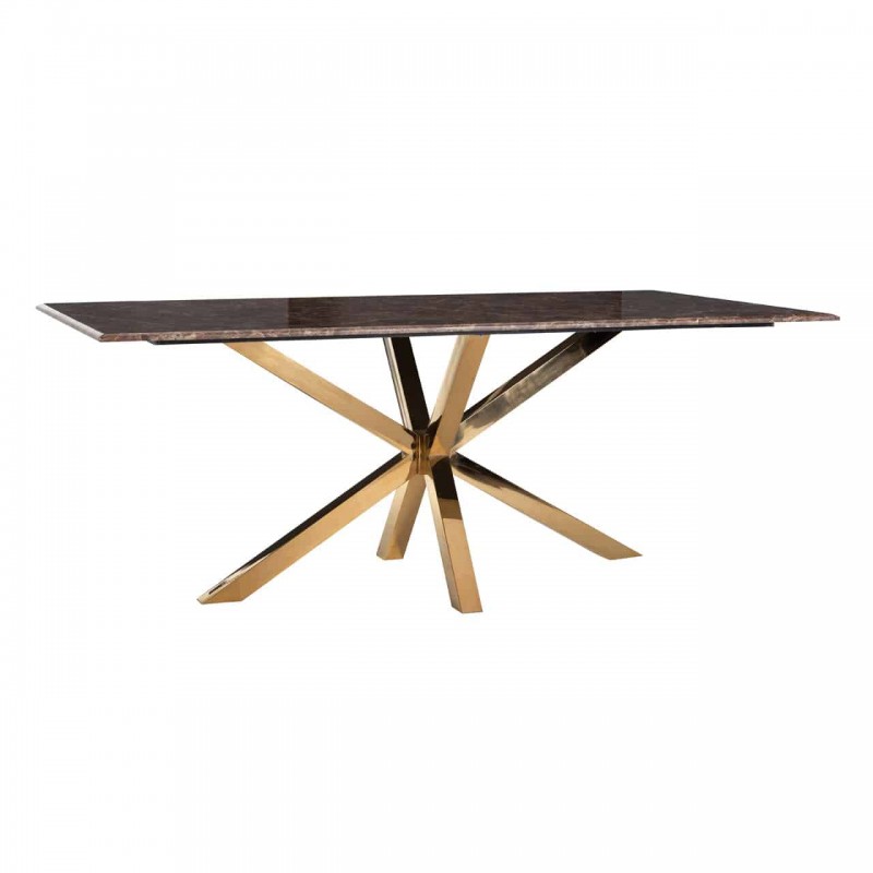 Elegáns megjelenésű étkezőasztal barna márvány hatású lappal, pók formájú arany színű krómacél lábazattal. Az étkezőasztal egy kollekció része. egyéb termékek is elérhetőek.