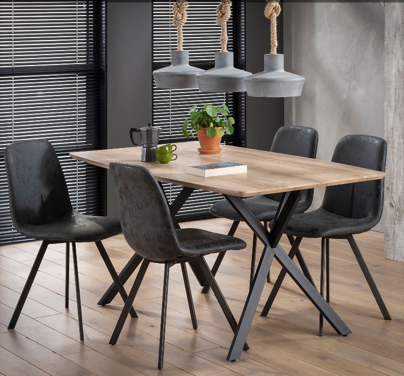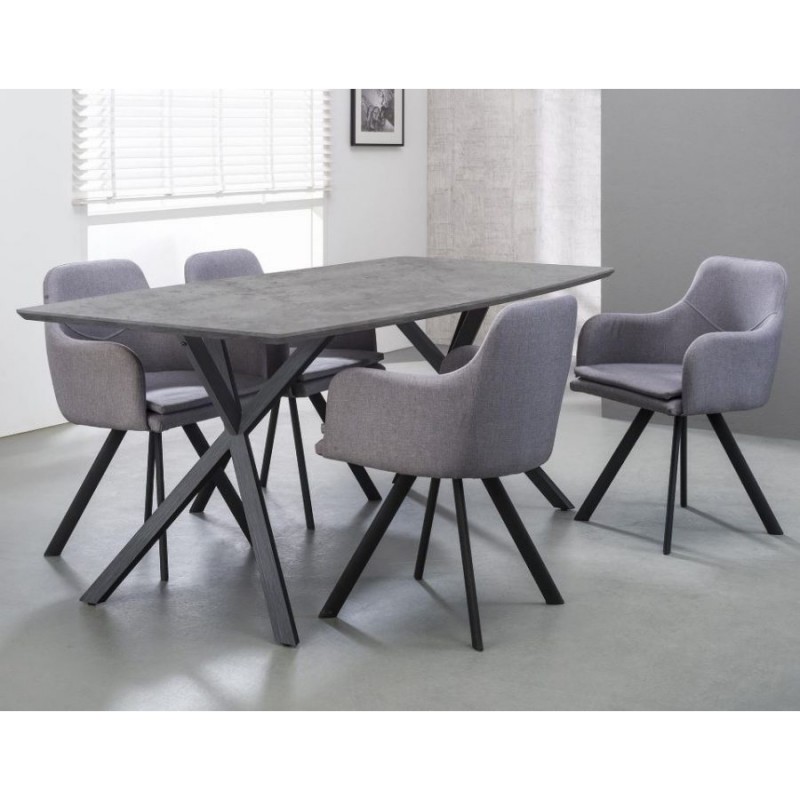 Étkezőasztal MDF lappal, masszív rozsdamentes acél lábakkal.