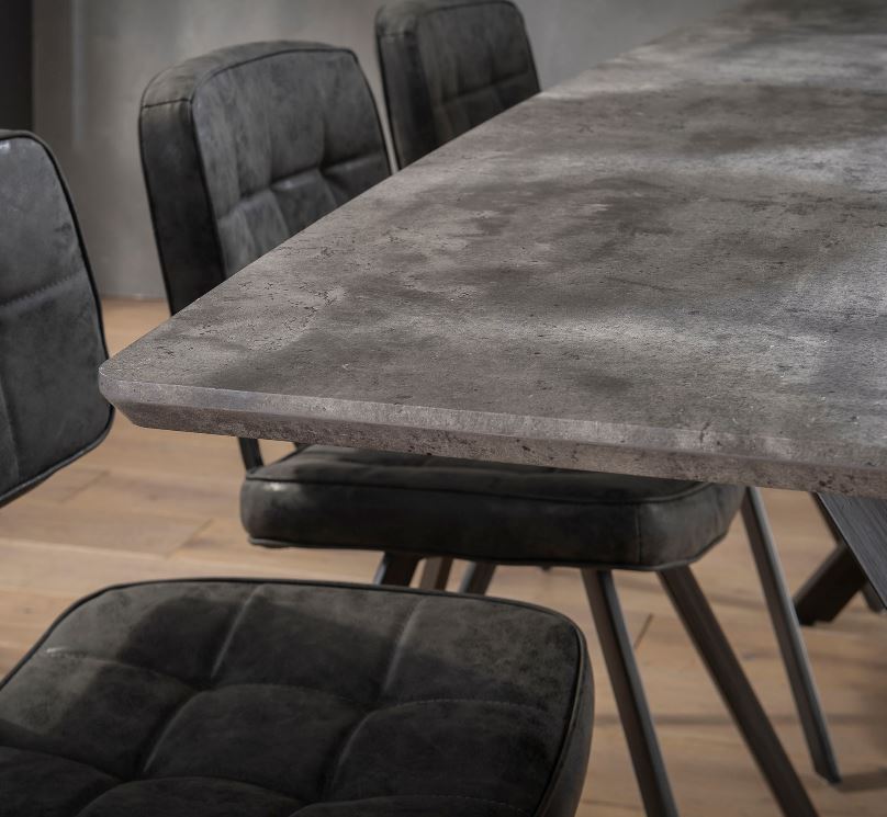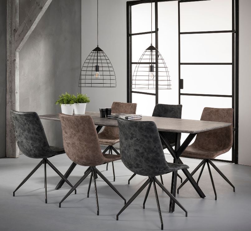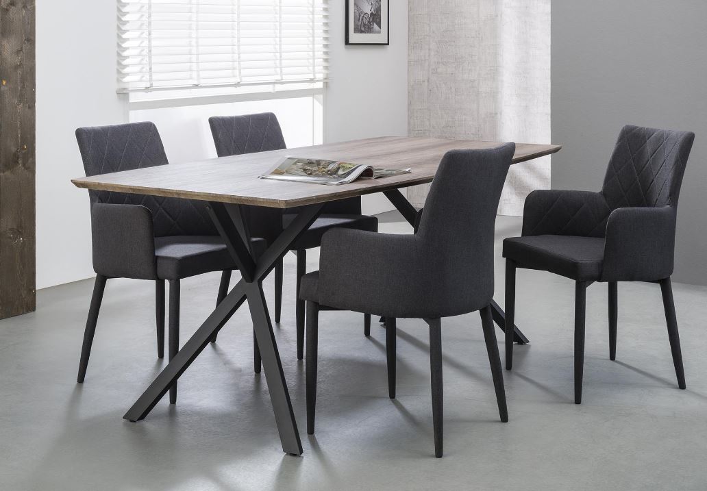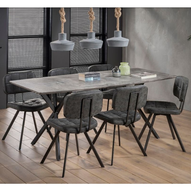 Indusztriális stílusú étkezőasztal MDF lappal, masszív rozsdamentes acél lábakkal.