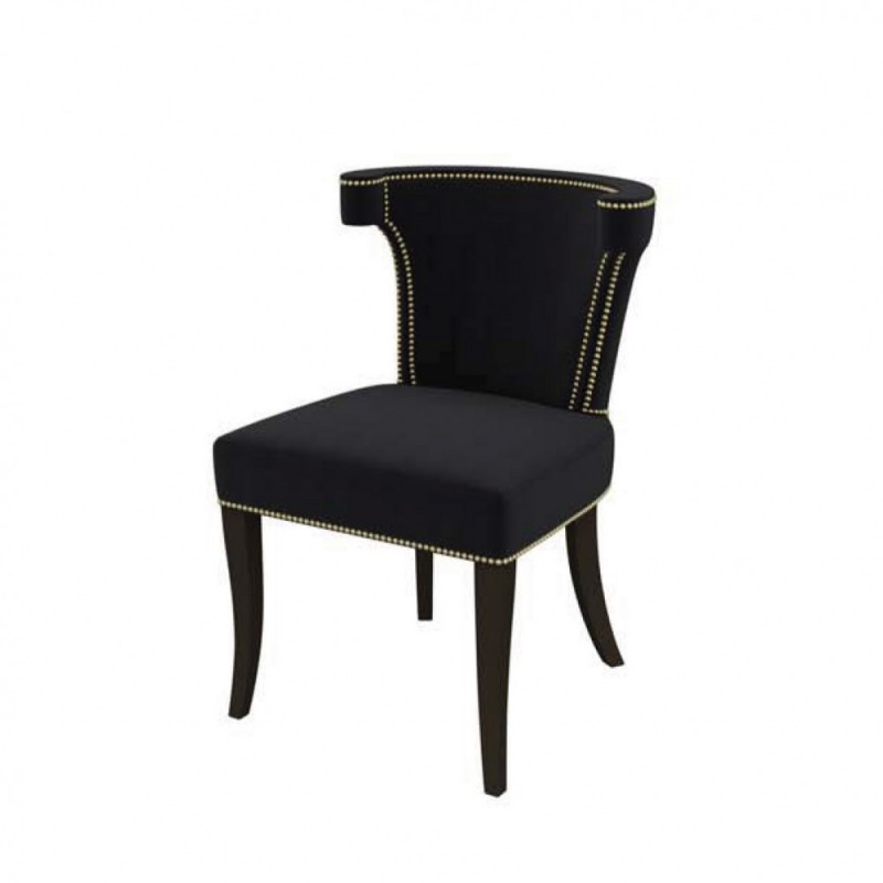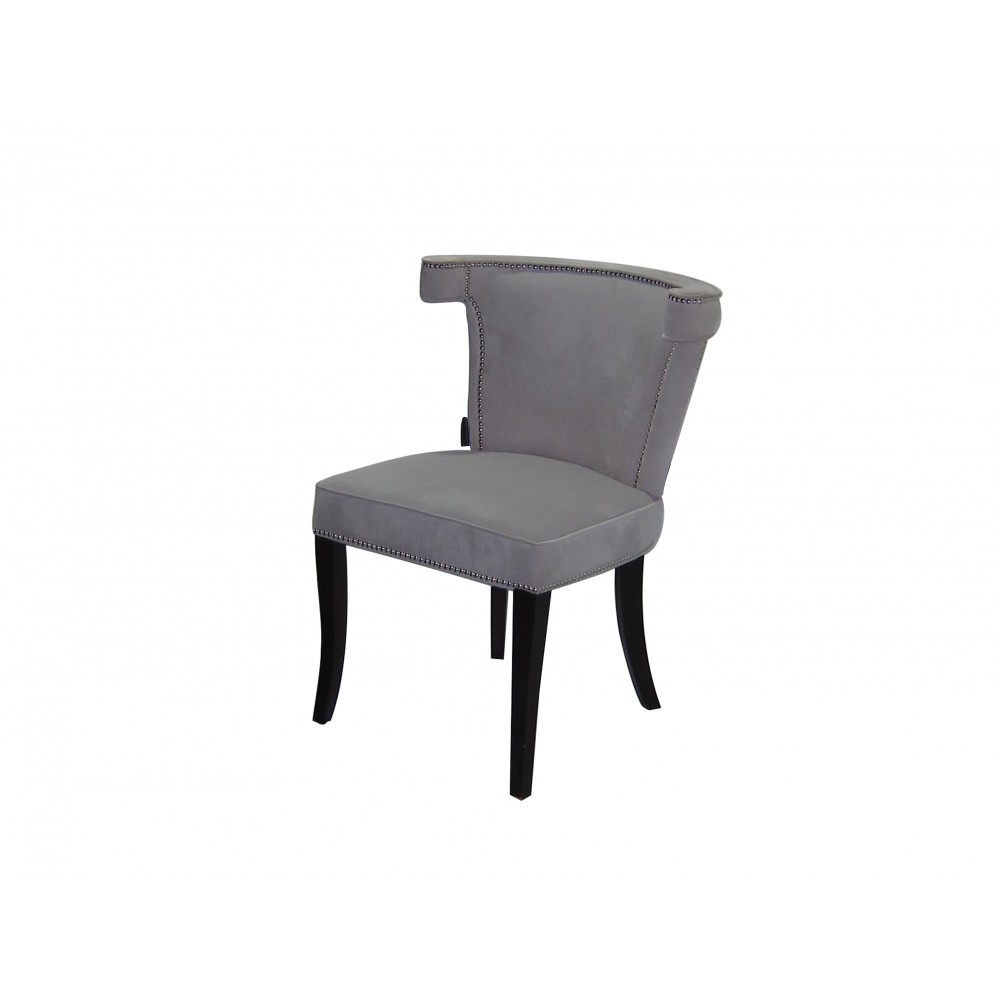 Elegáns, szegecselt étkezőszék trendi velvet szövet bevonattal. A szék lábai fából készülnek.