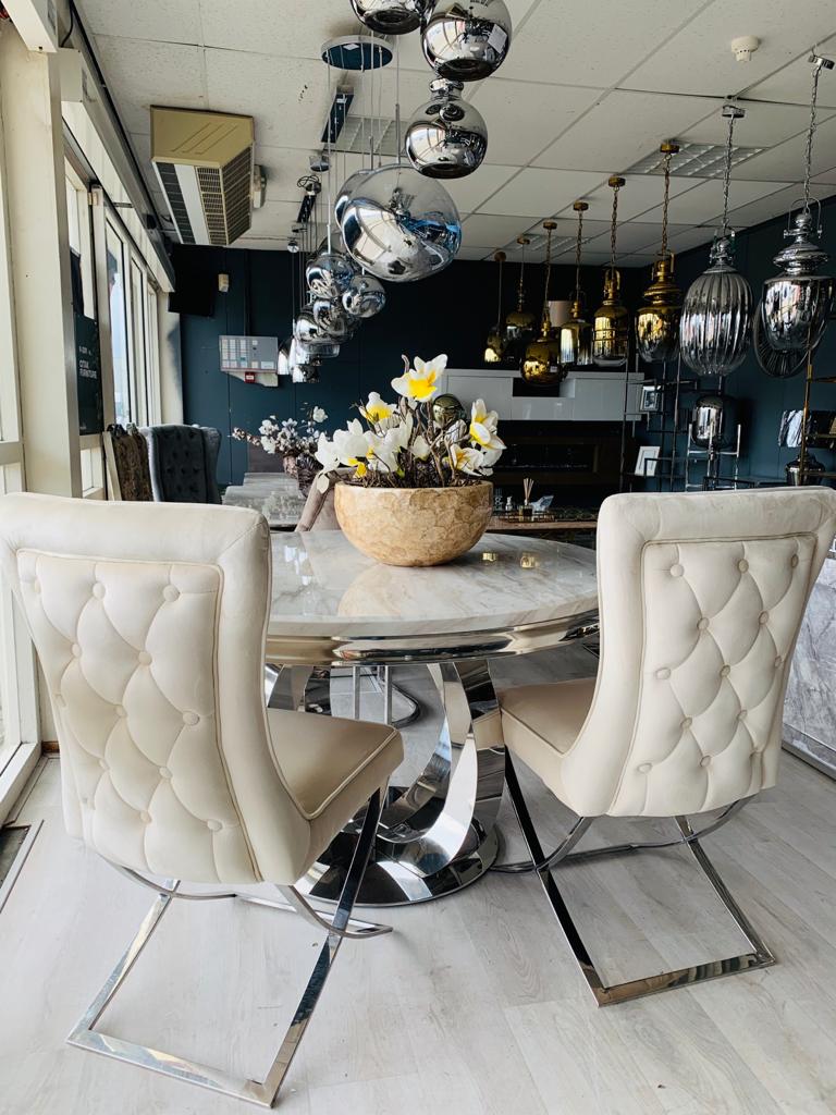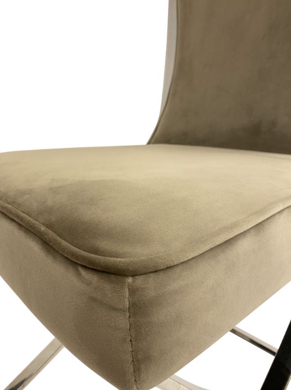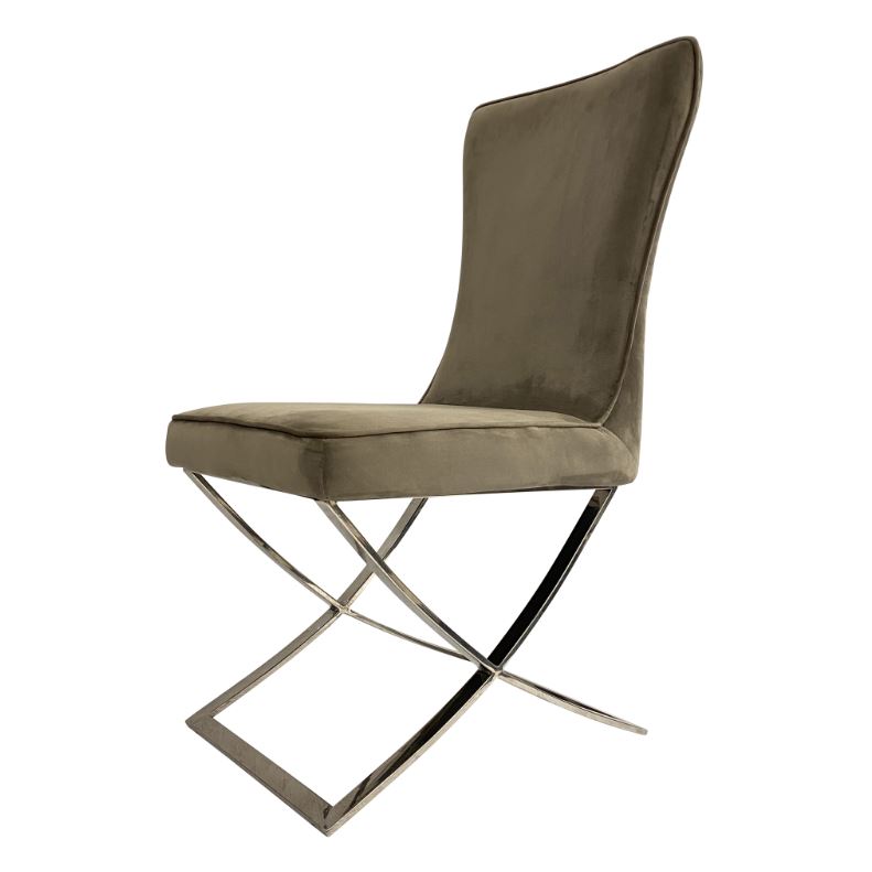Elegáns étkezőszék választható szövettel, ezüst színű lábazattal.