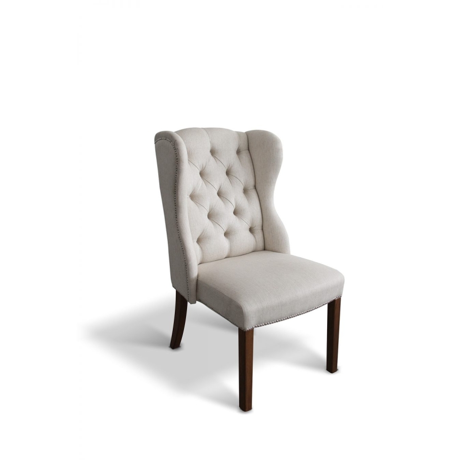 Elegáns, tűzött háttámlás, szegecselt, tömörfa vázzal rendelkező étkezőszék.