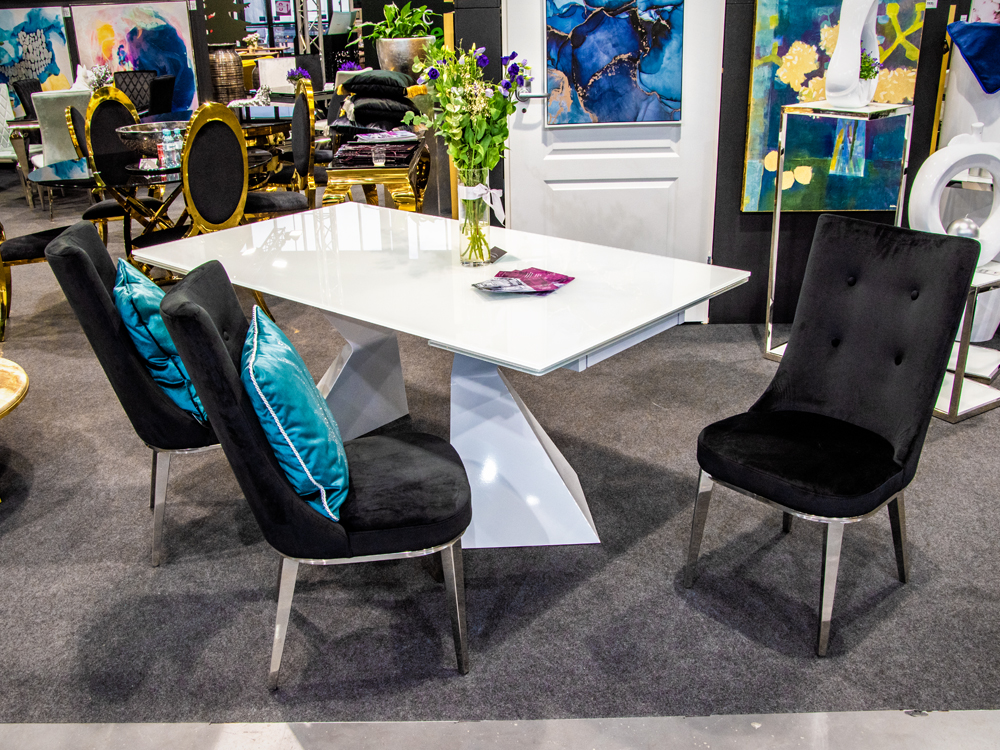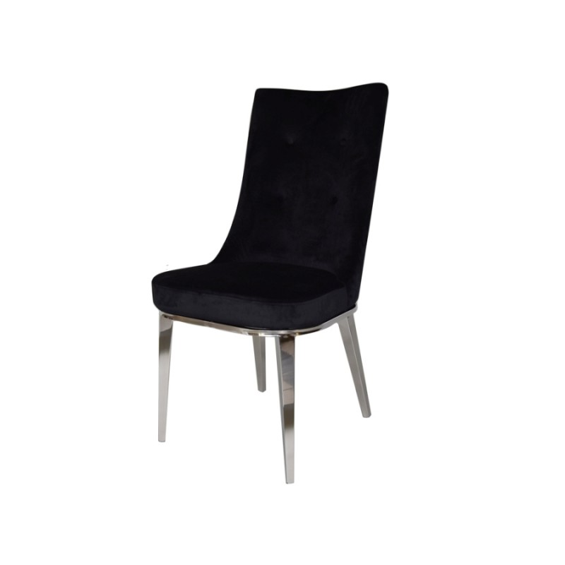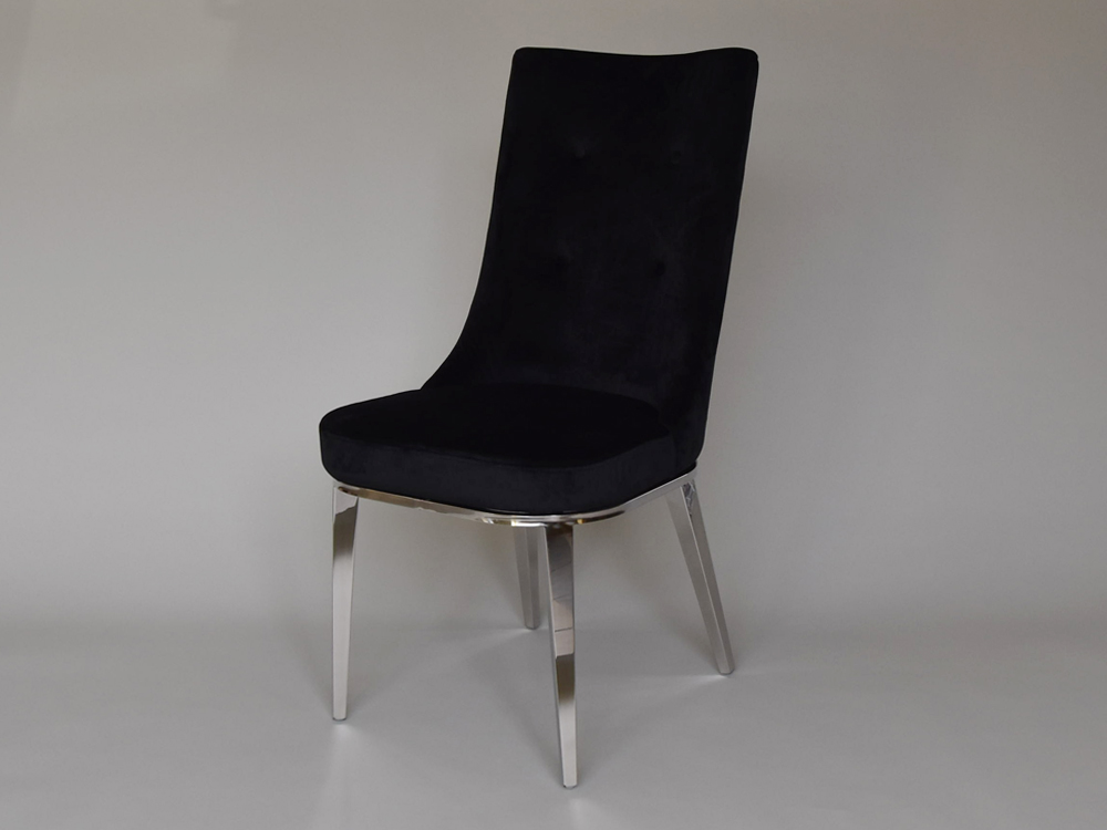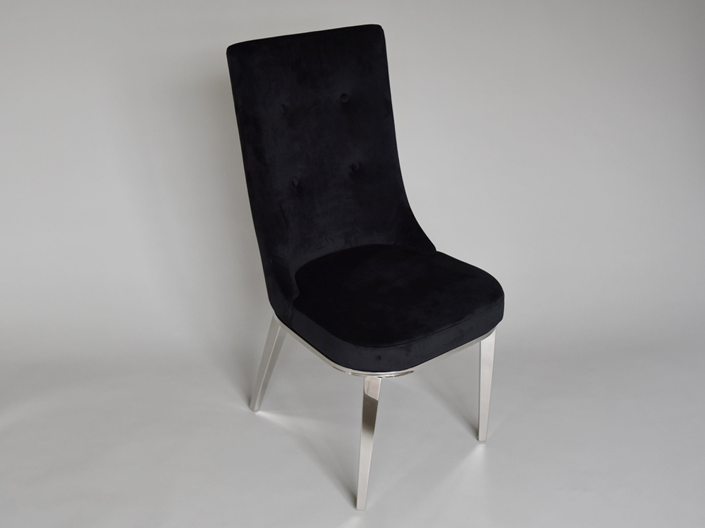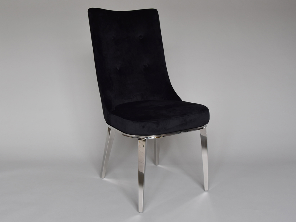 Elegáns velúr borítású szék krómozott acél vázzal fekete, ezüst színben.