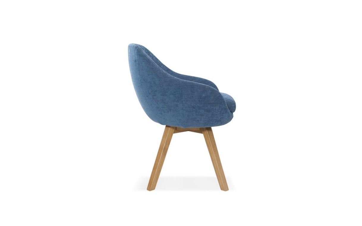 Elegáns, lágy vonalvezetésű étkezőszék tömörfa lábakkal, választható lábszínnel és kárpittal.