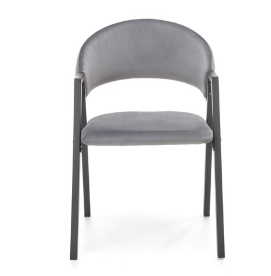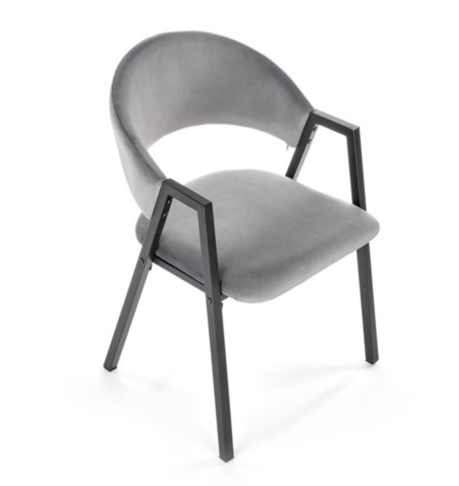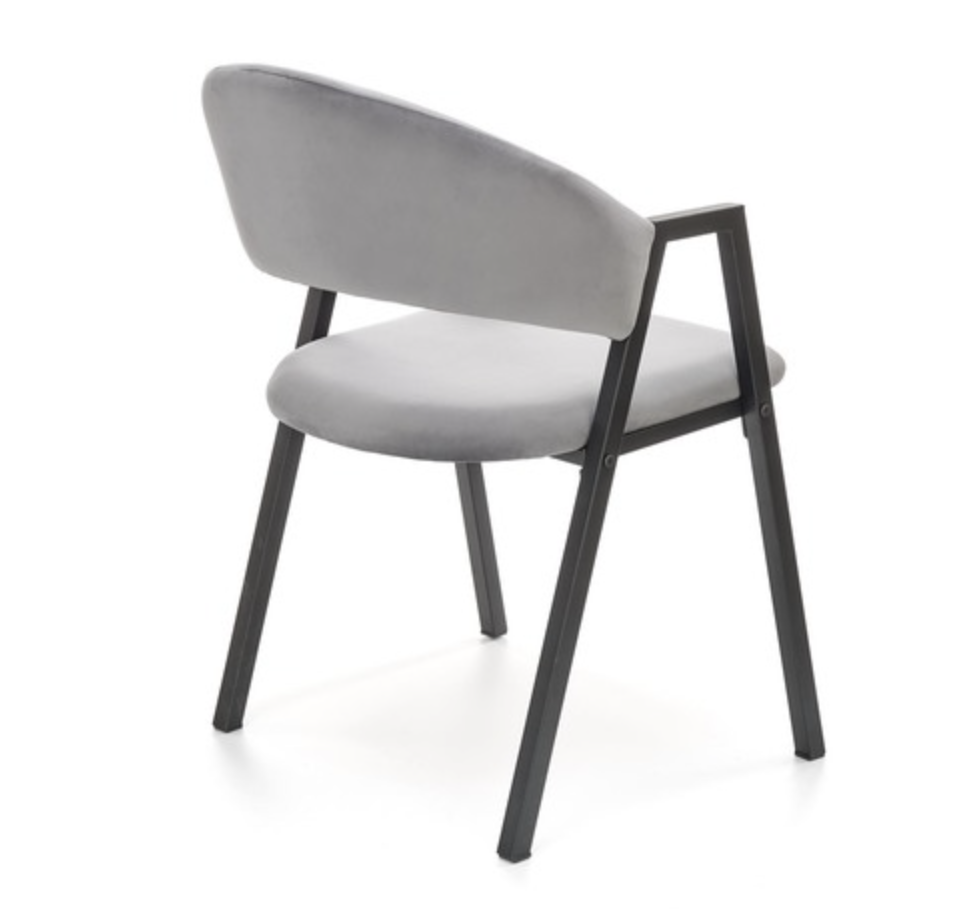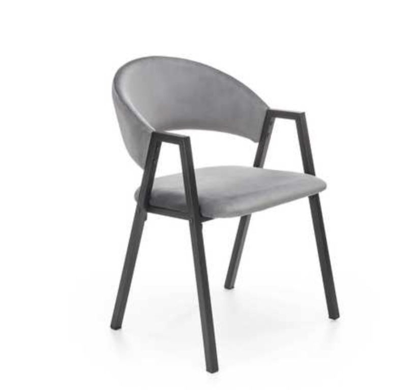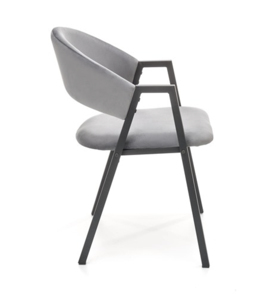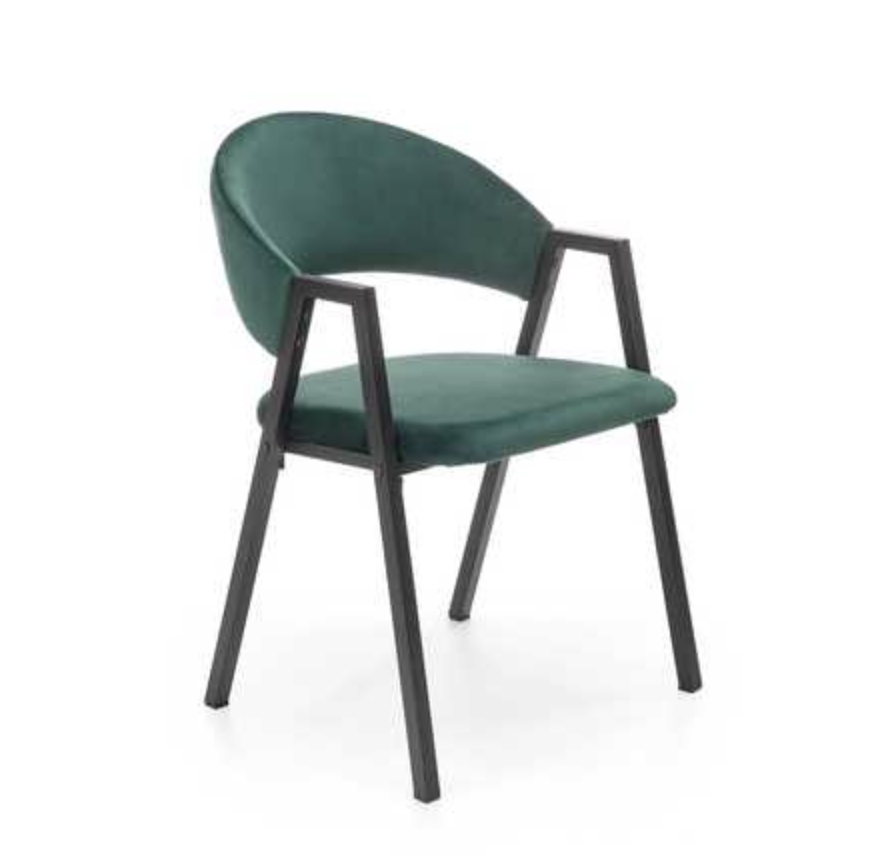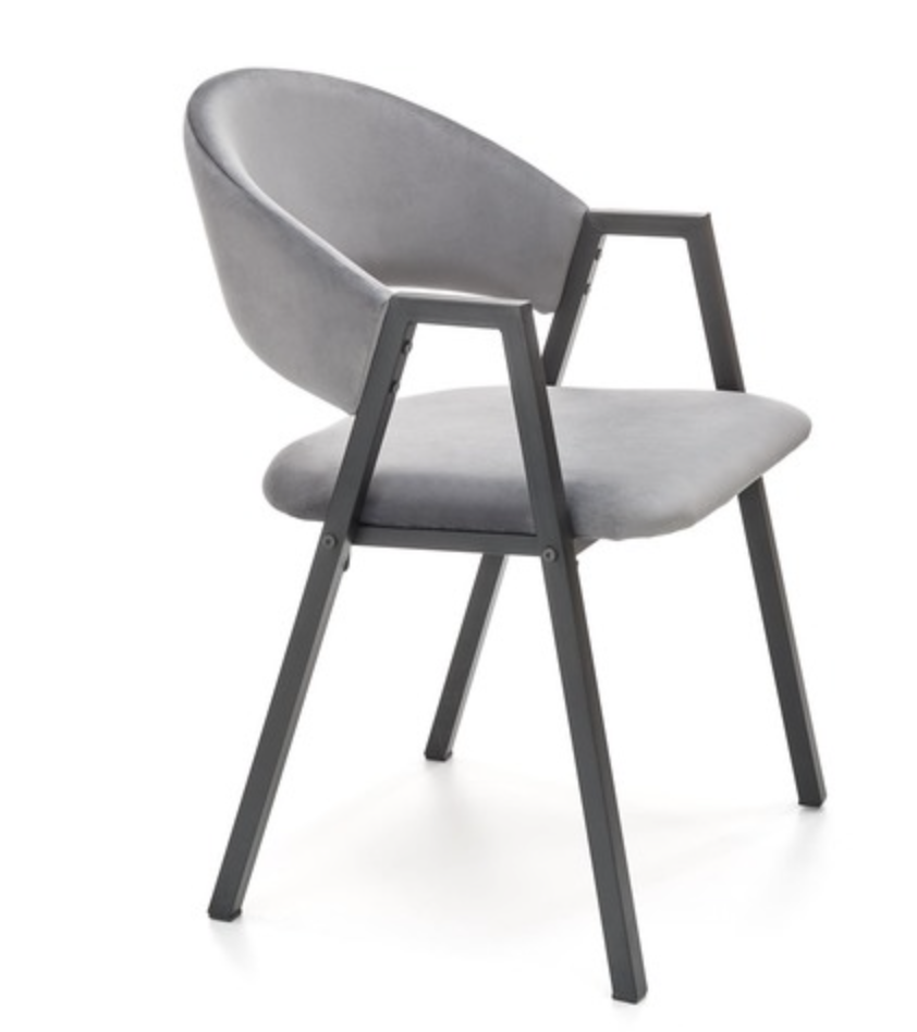 Modern étkezőszék porfestett vázzal, bársony borítással.
