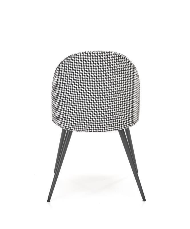 Elegáns étkezőszék porfestett vázzal, szövet kárpitozással, mintás háttámlával.