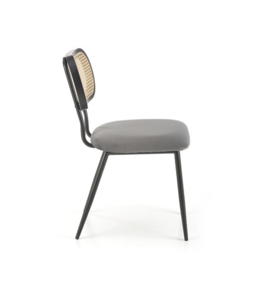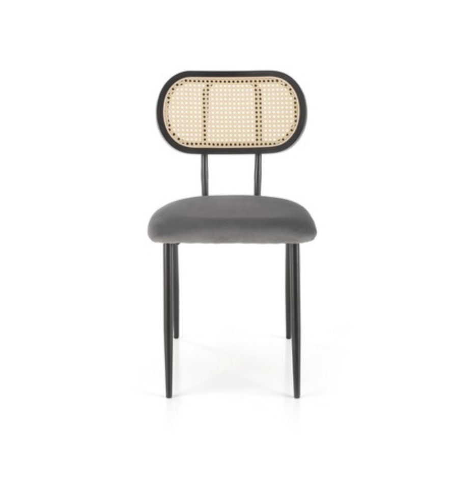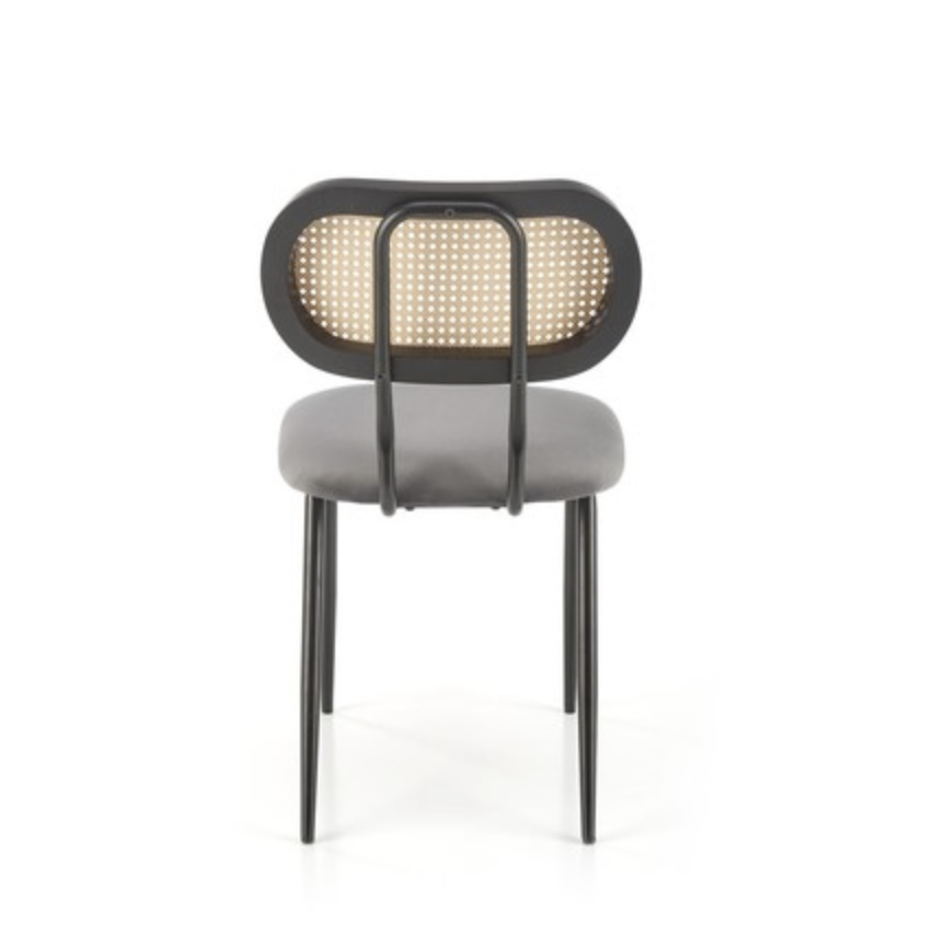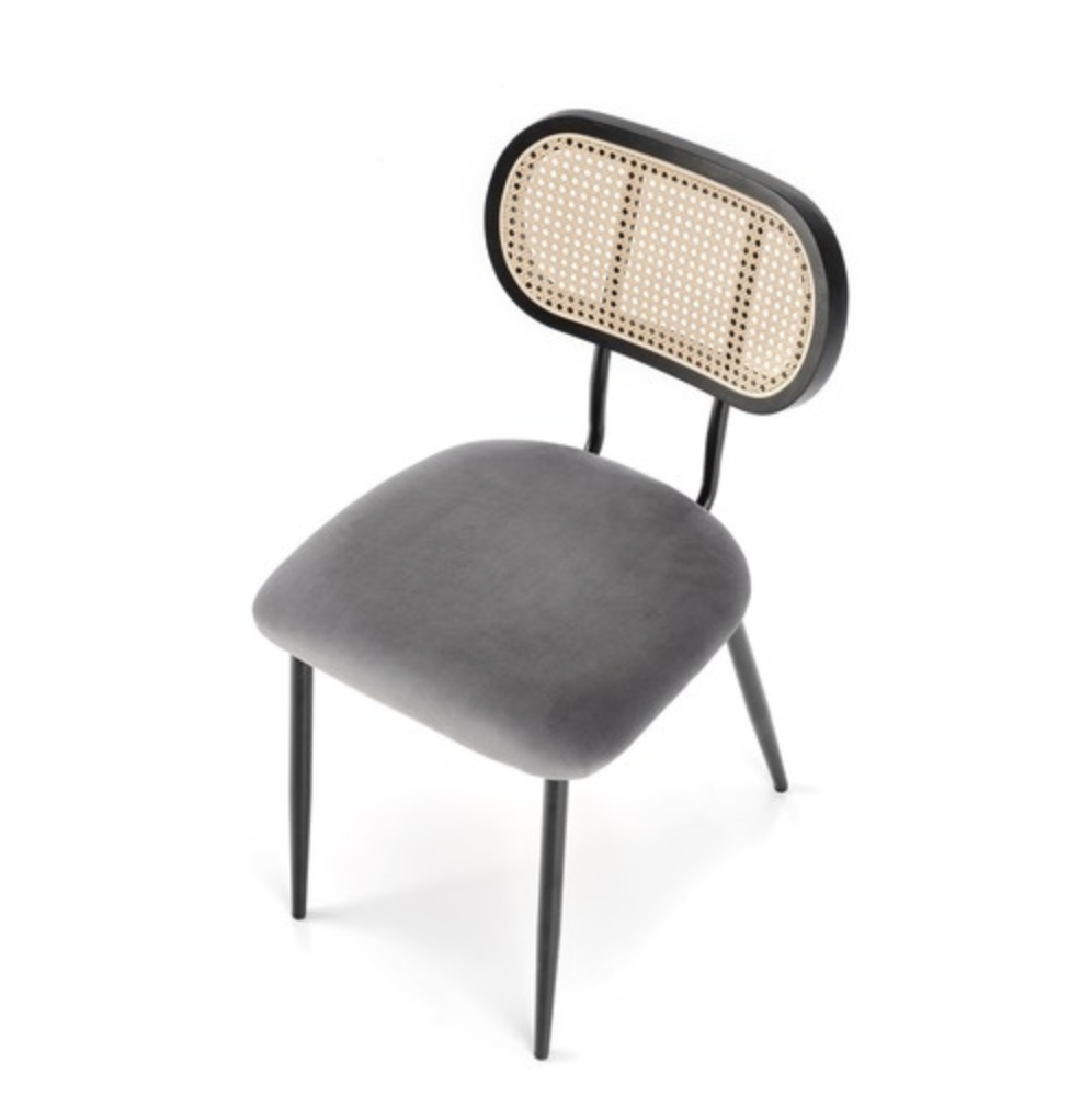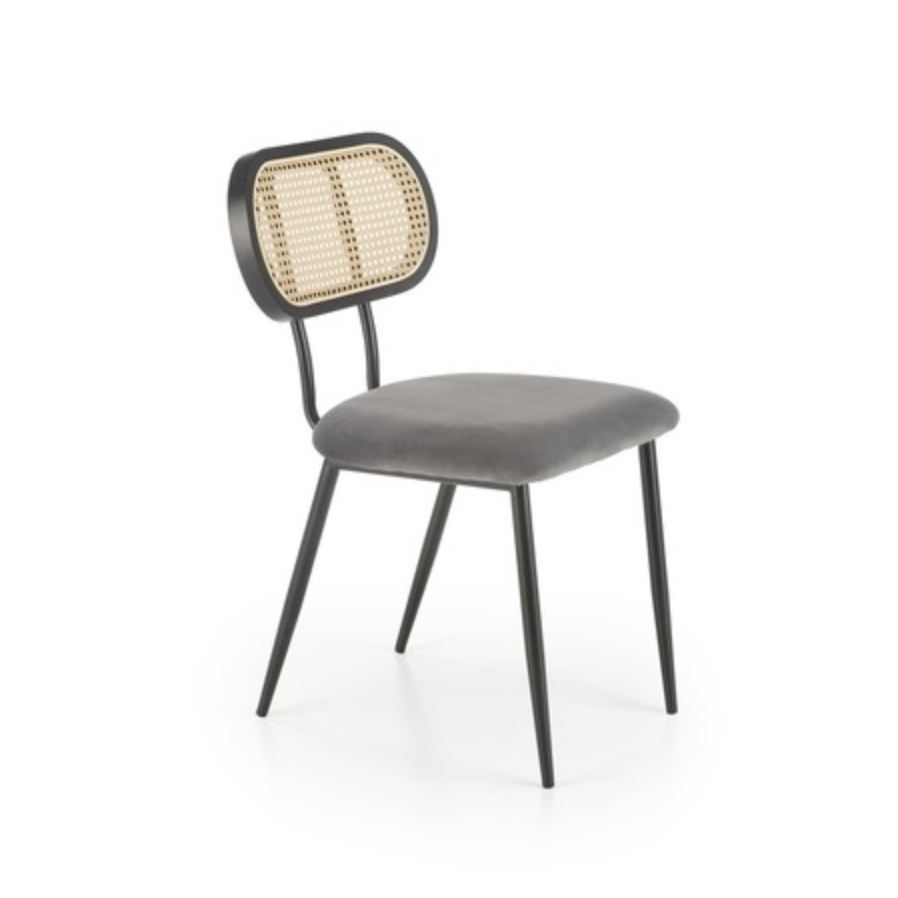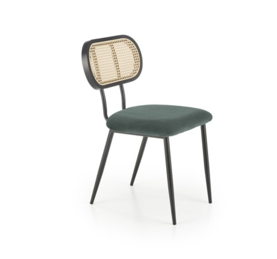 Kényelmes rattan háttámlás, bársony borítású étkezőszék.