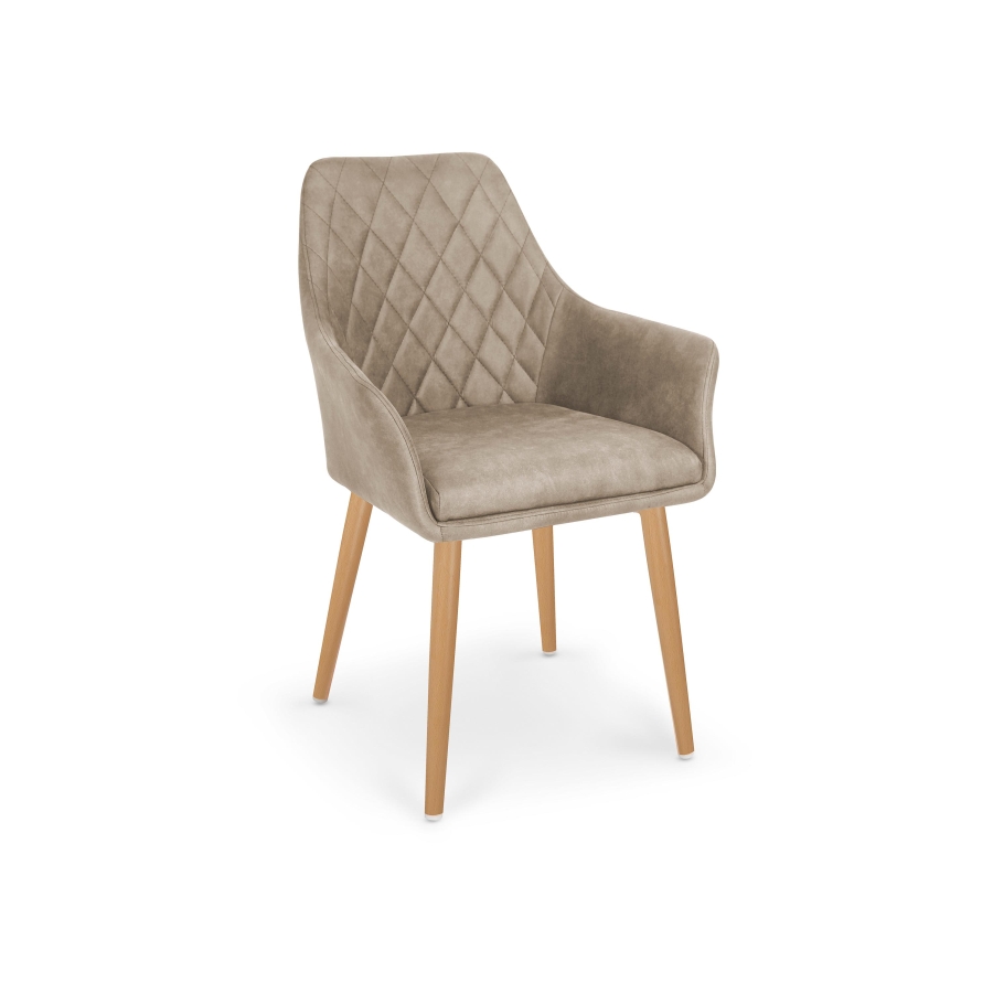 Festett acél vázzal rendelkező, textilbőr kárpittal borított étkezőszék.