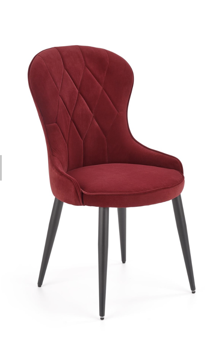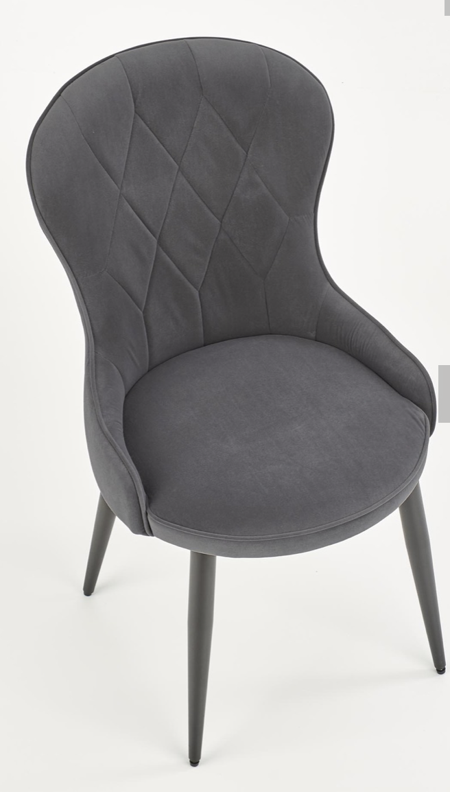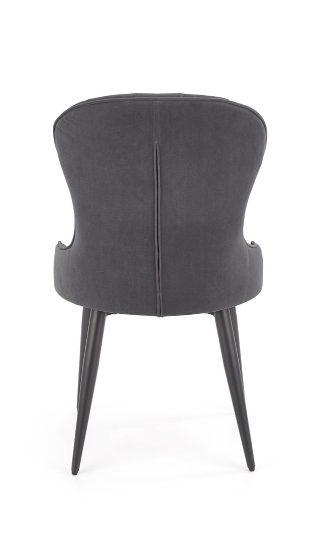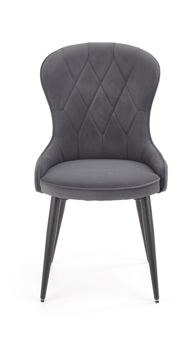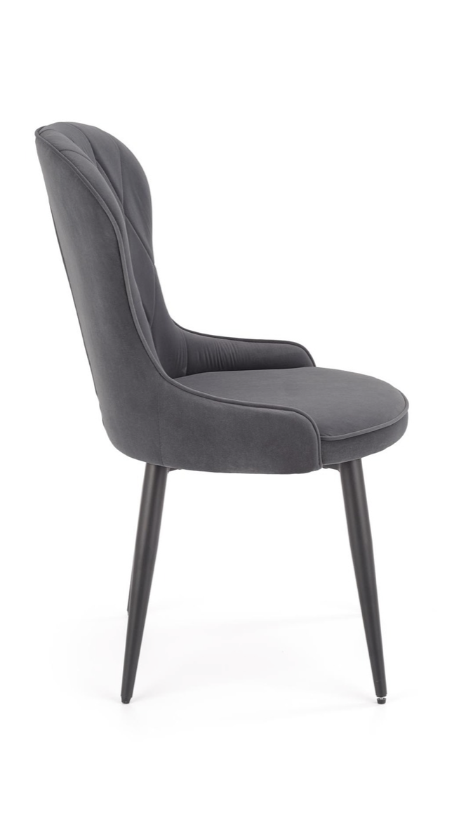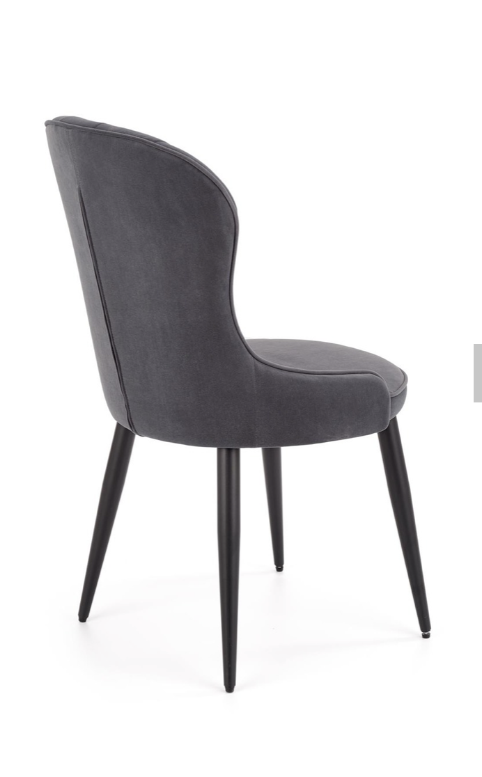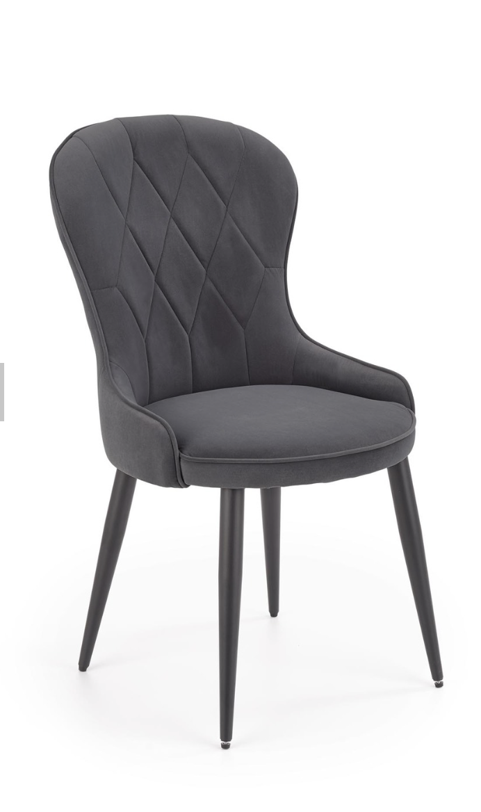 Elegáns étkezőszék magas háttámlával, porszórt acél lábakkal, trendi bársony szövet bevonattal.
