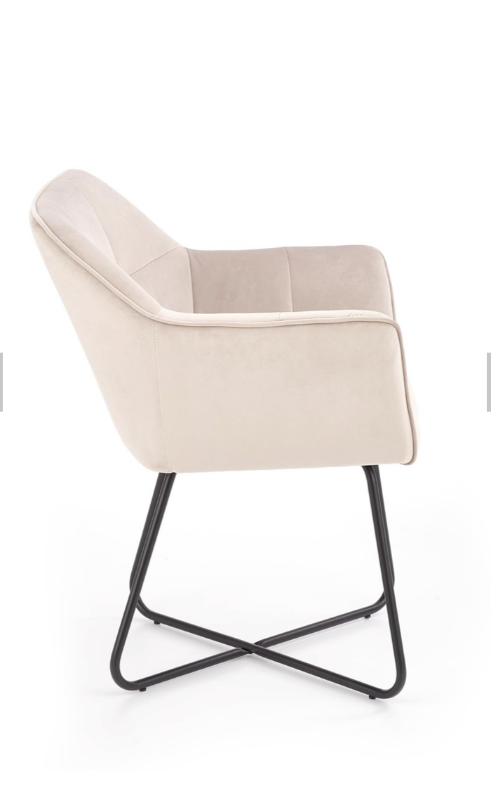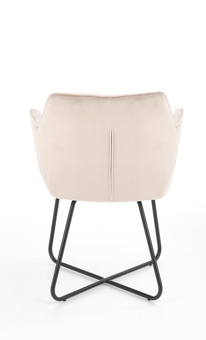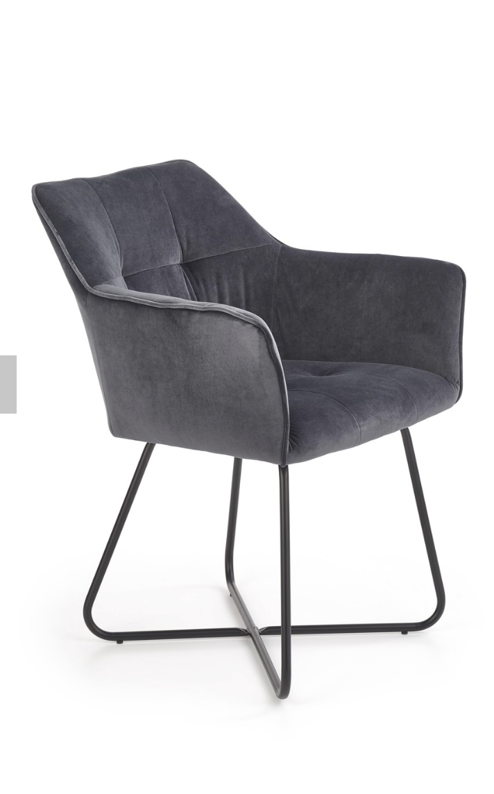 Elegáns étkezőszék porszórt acél lábakkal, trendi bársony szövet bevonattal.