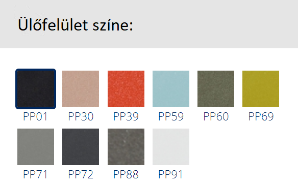 Színe: a lábazat és ülőfelület színe egyedileg választható a mellékelt színskála szerint. Kérjen látványtervet kollégáinktól!