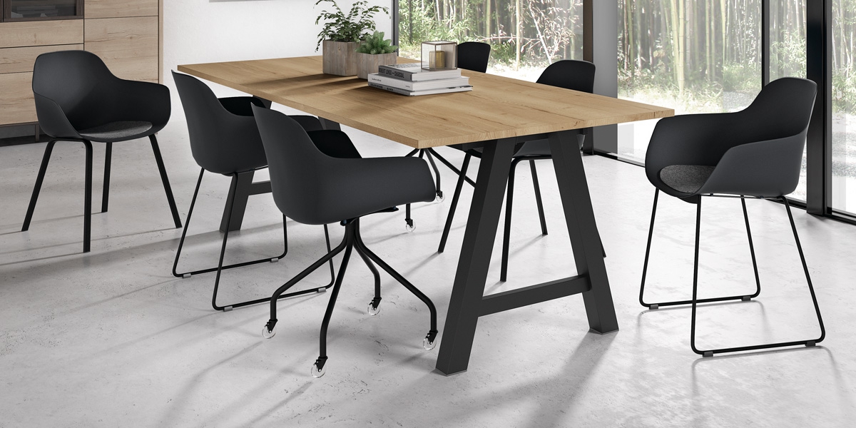 Elegáns, lágy vonalvezetésű étkezőszék választható láb- és ülőfelület színnel. Szánkótalpas, csillaglábas és bárszék változatban is elérhető.