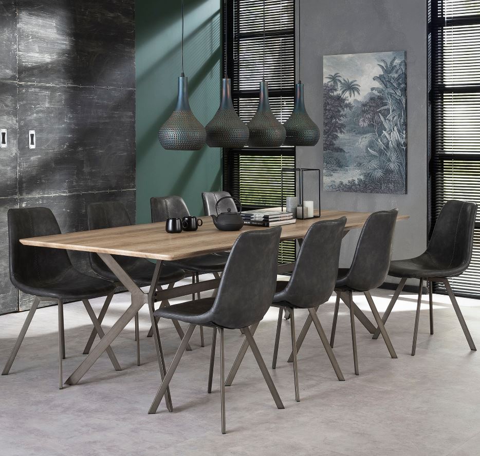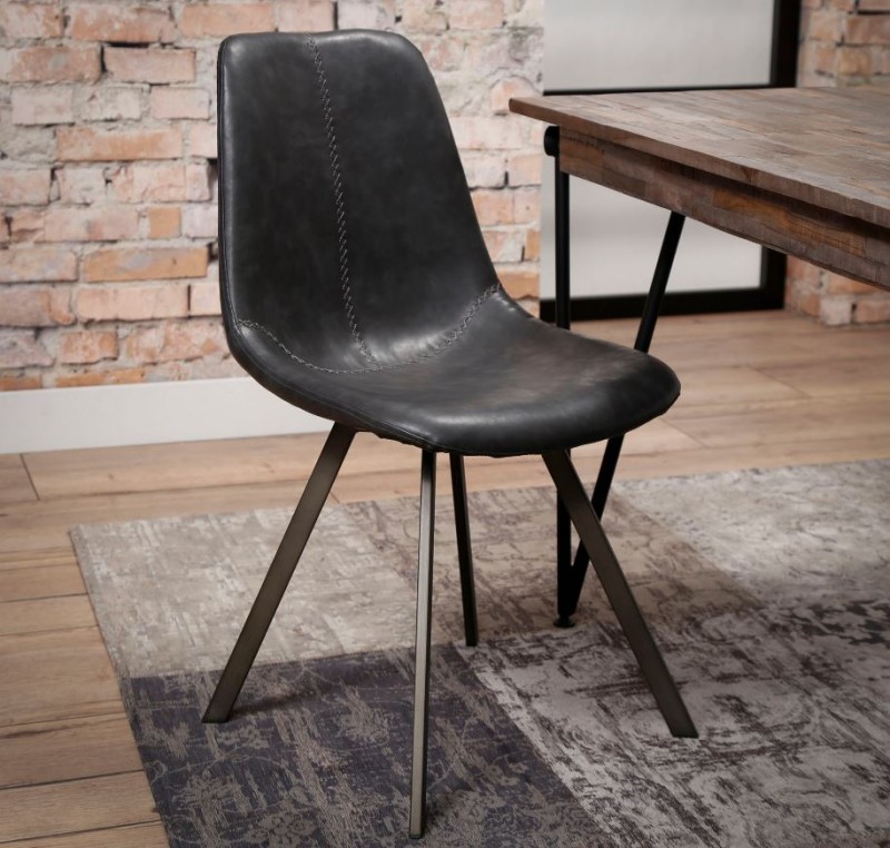 Modern étkezőszék acél vázzal, nagy kopásállóságú bőrhatású kárpitozással.