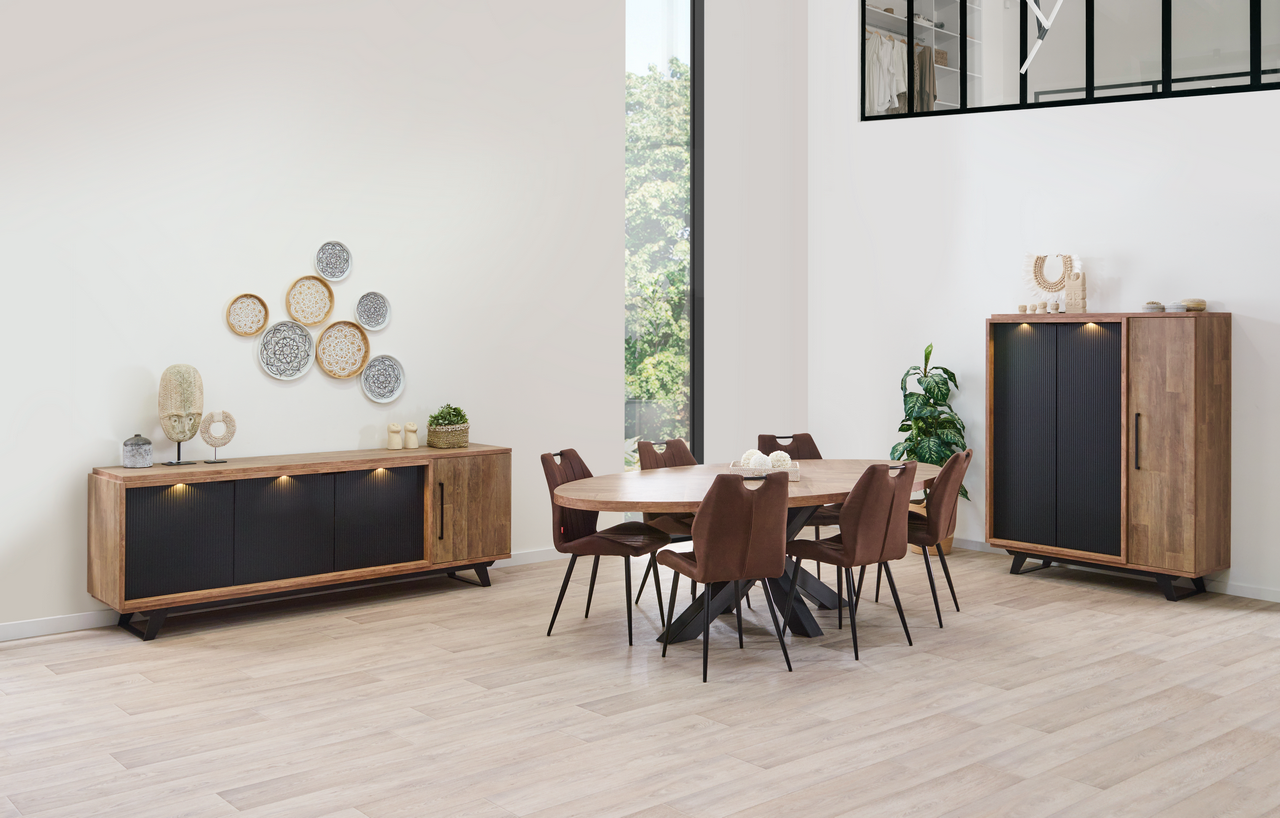 Minőségi, robusztus megjelenésű elemes étkező bútor kollekció.
