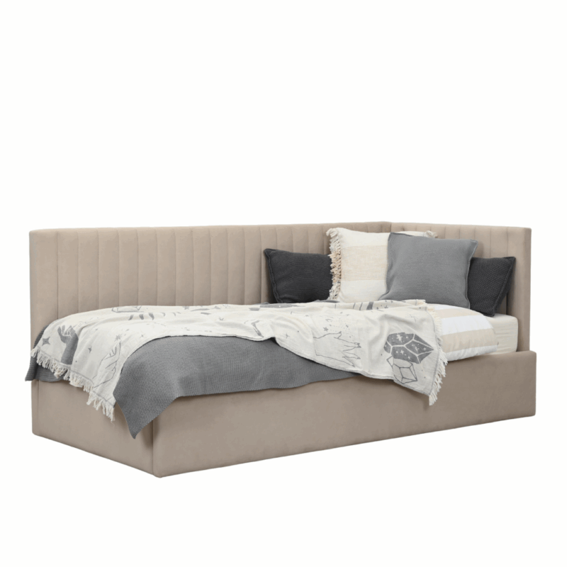 Letisztult megjelenésű, sarokba illeszkedő kényelmes gyerek / ifjúsági ágy.