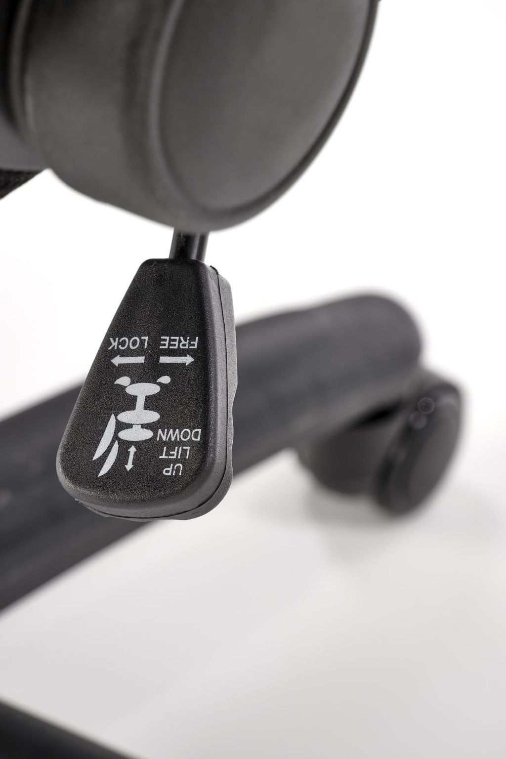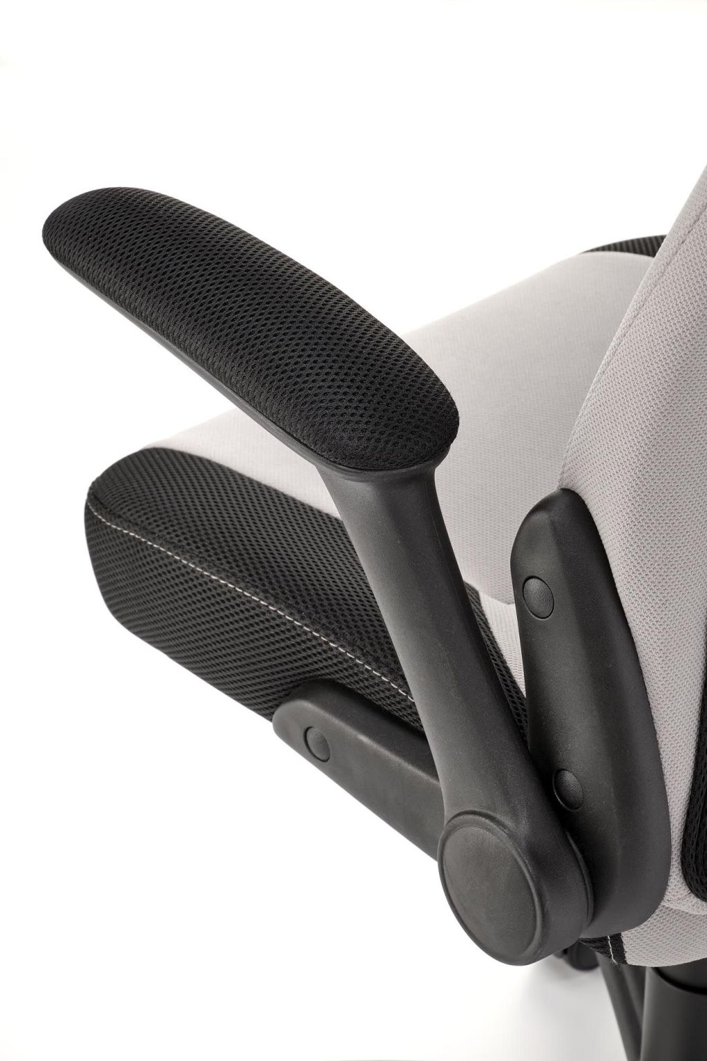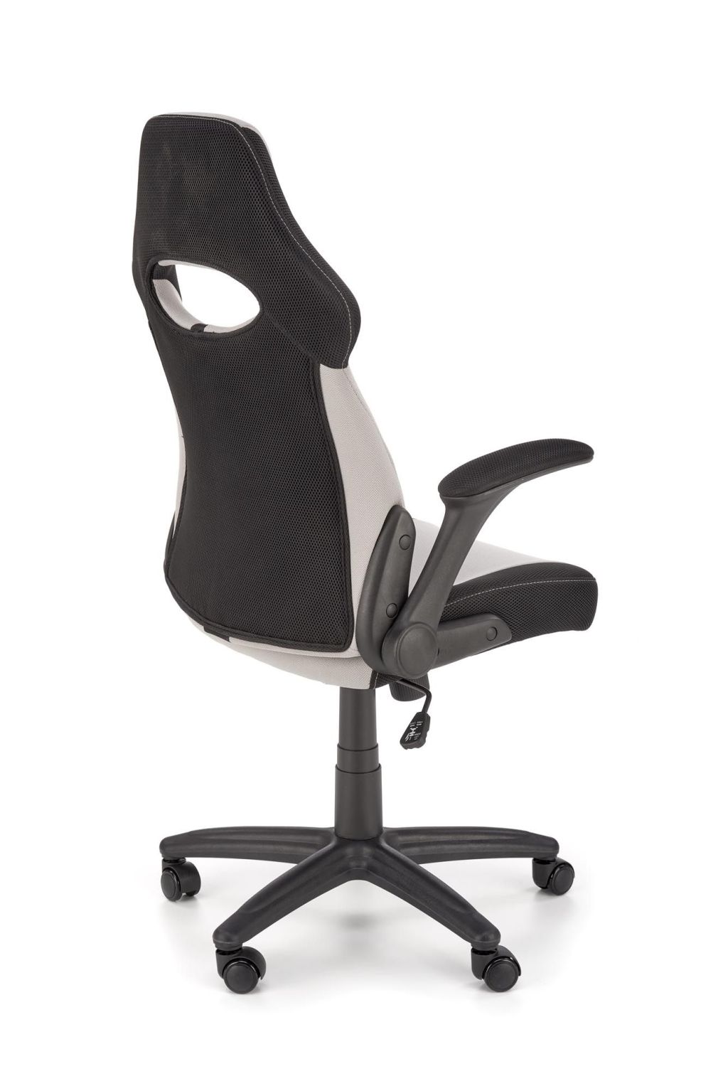 Letisztult megjelenésű ifjúsági forgószék felhajtható karfával, görgős lábakkal, állítható ülésmagassággal.