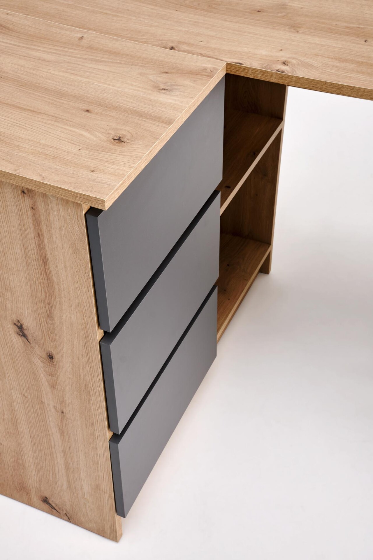 Praktikus sarok íróasztal polcokkal, fiókokkal.
