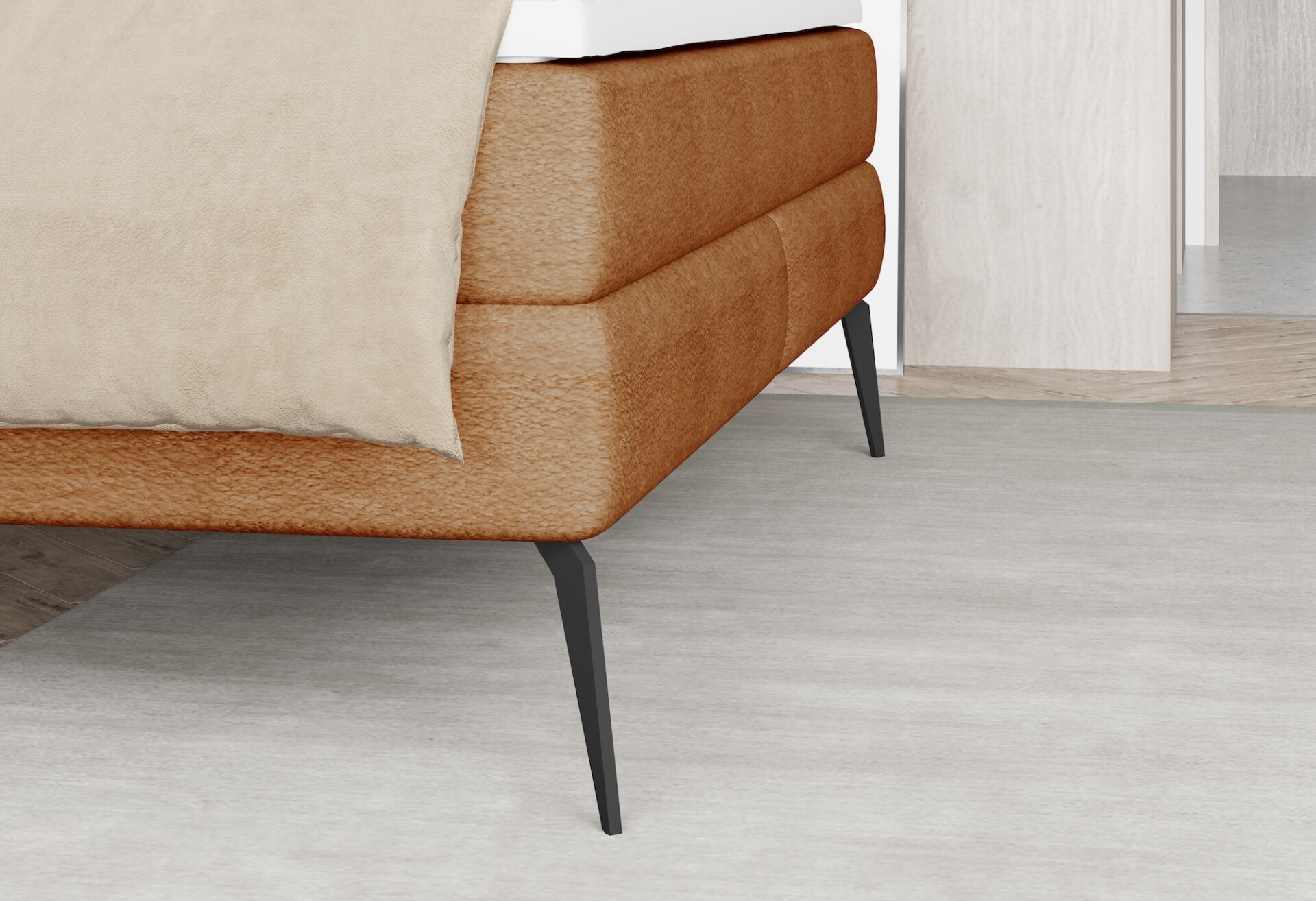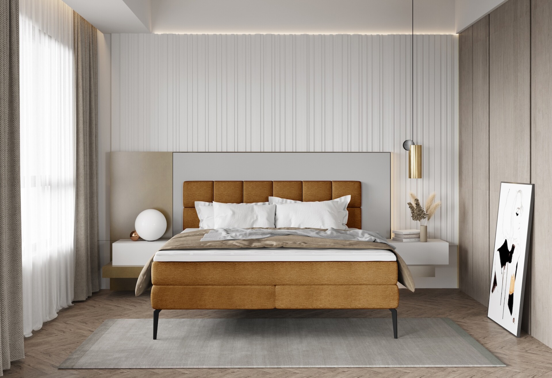 Az Adel boxspring franciaágy elegáns megjelenése mellett kimagasló kényelmet kínál – dupla matracrendszerének köszönhetően tökéletes alátámasztást és pihentető alvásélményt biztosít minden este.