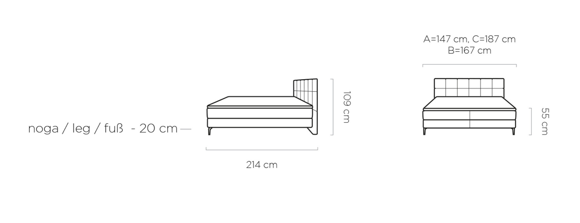 ágytest: 147 / 167 / 187 x 214 cm