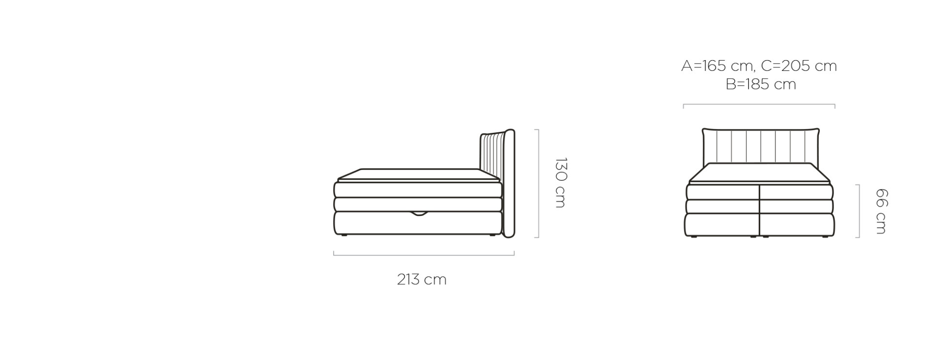 ágytest: 165 / 185 / 205 x 213 cm