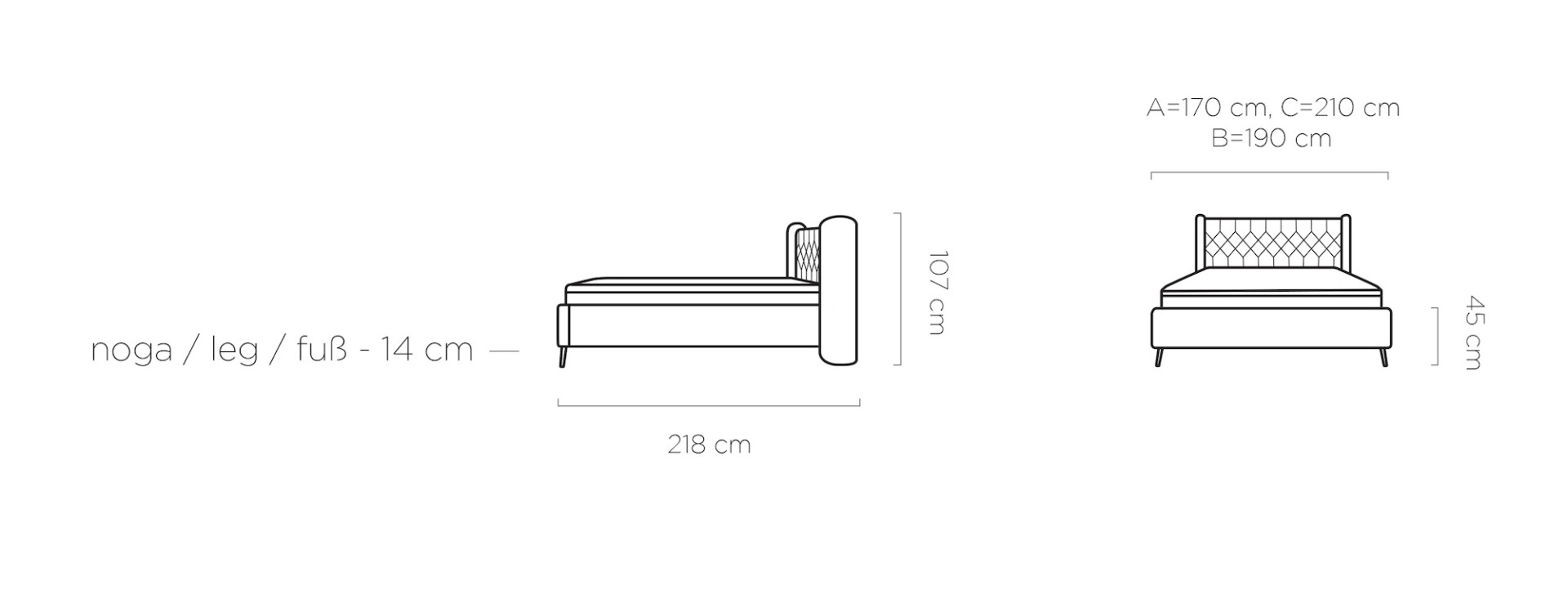 ágytest: 170 / 190 / 210 x 218 cm