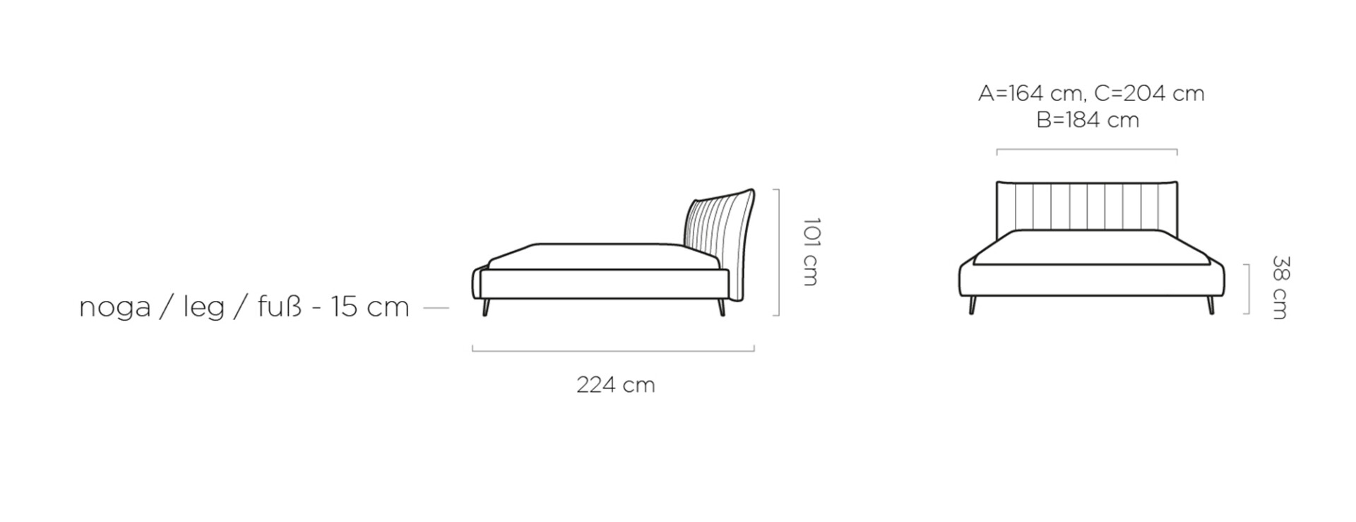 ágytest: 164 / 184 / 204 x 224 cm