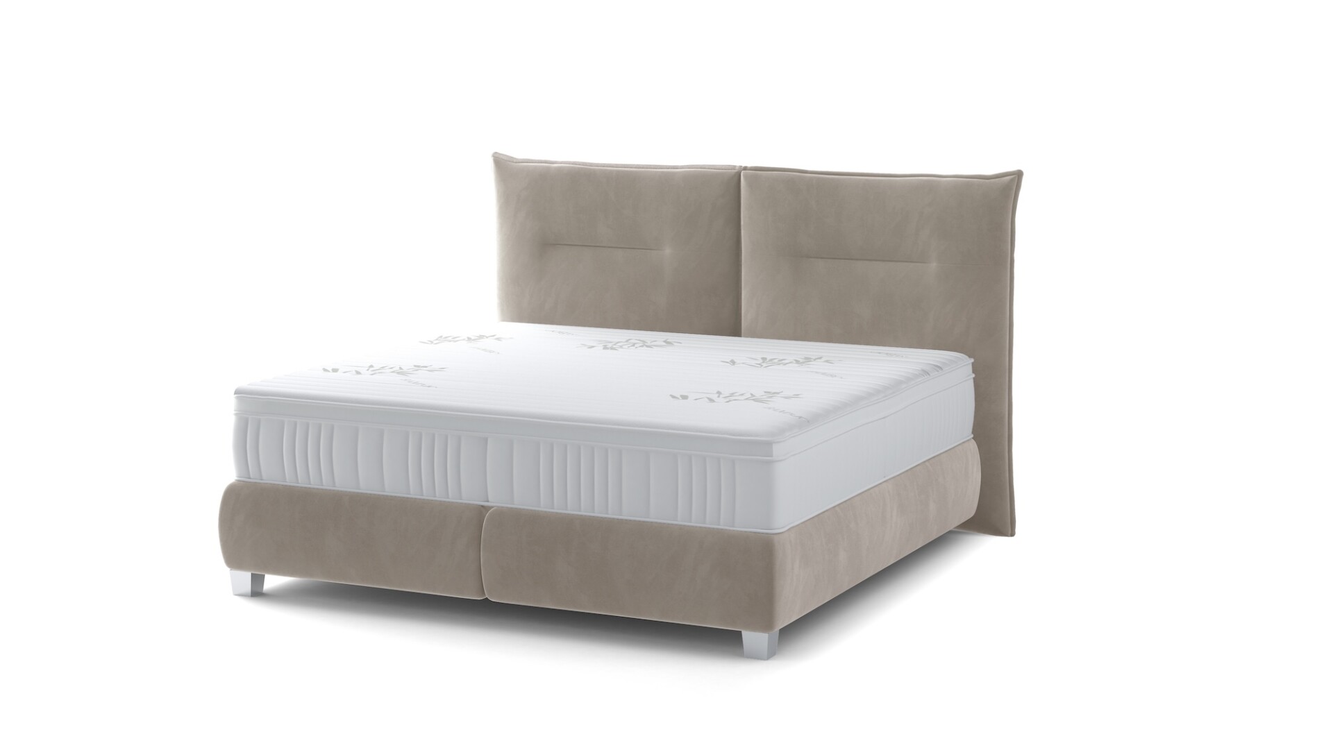 Stílusos megjelenésű franciaágy osztott fejvéggel.