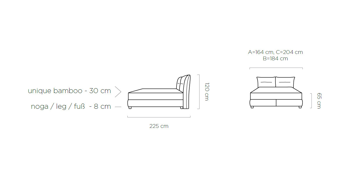 ágytest: 164 / 184 / 204 x 225 cm