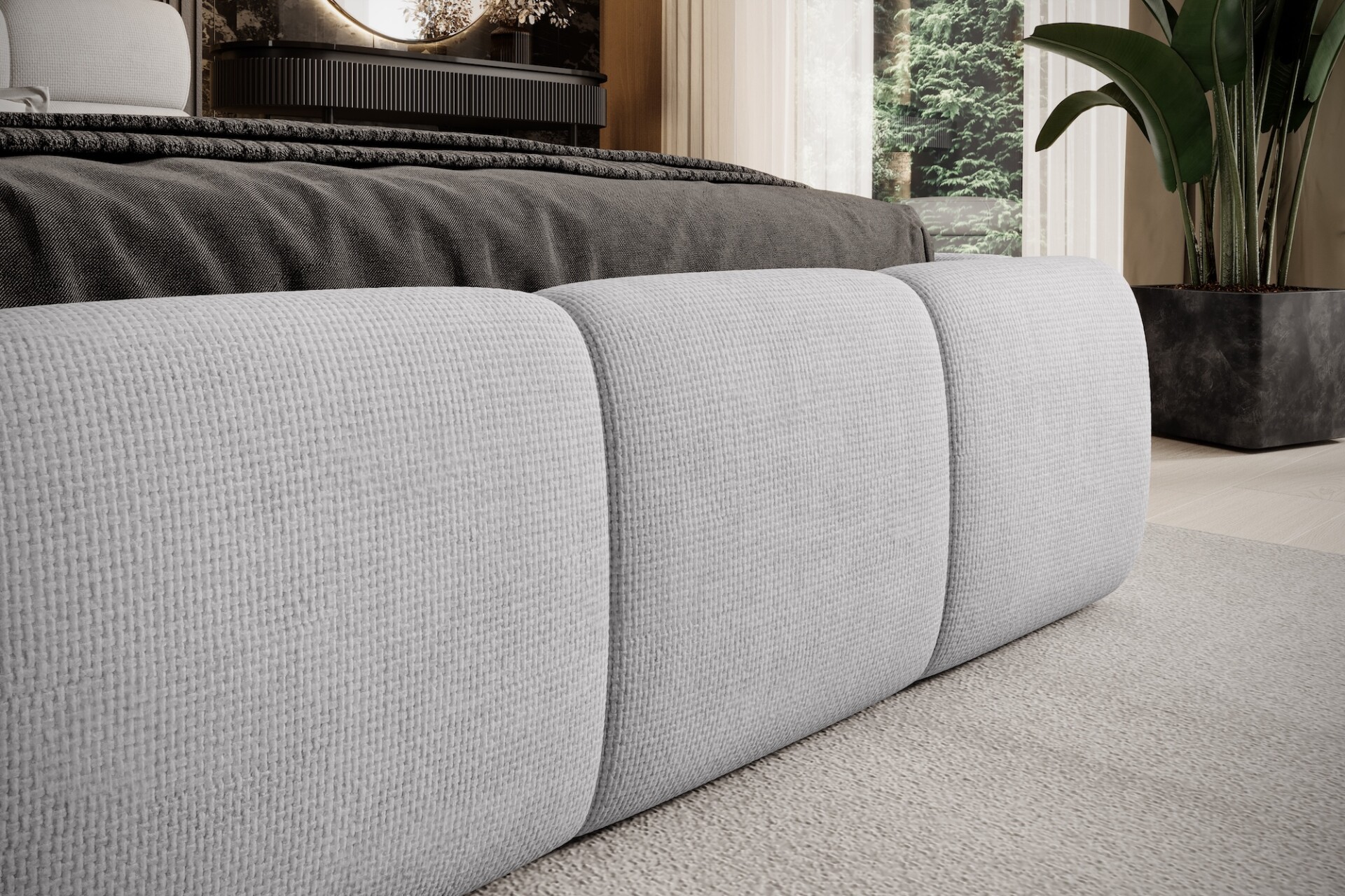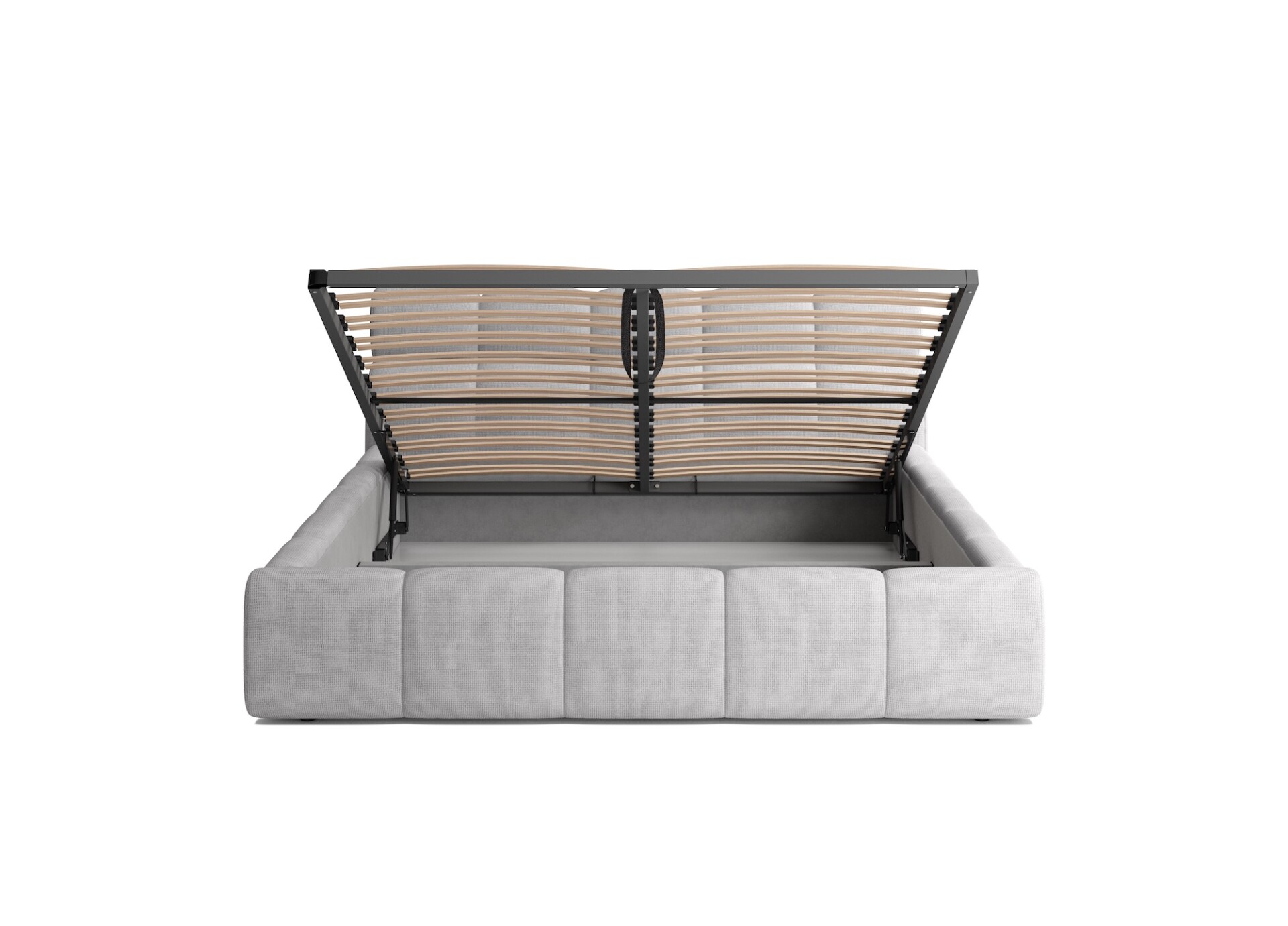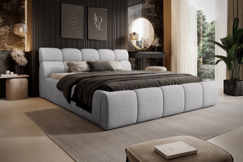 Stílusos megjelenésű franciaágy tűzött ágytesttel, ágyneműtartóval.