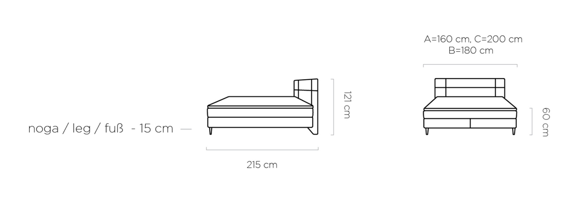 ágytest: 160 / 180 / 200 x 215 cm